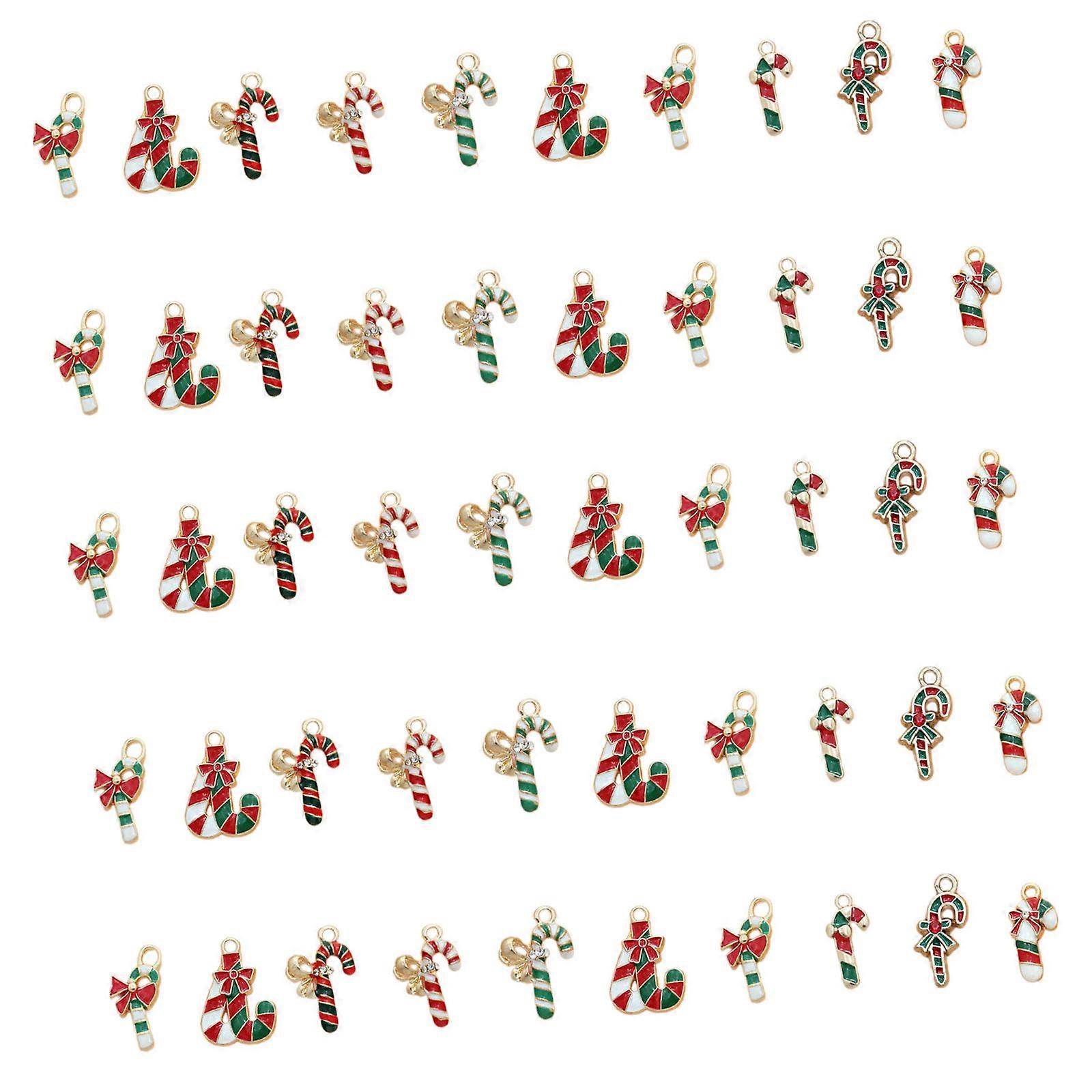 30/50Pcs Metal Christmas Cane Charm Holiday Charm Decoration For Christmas Earrings Necklace Keychains Jewelry Crafting 50