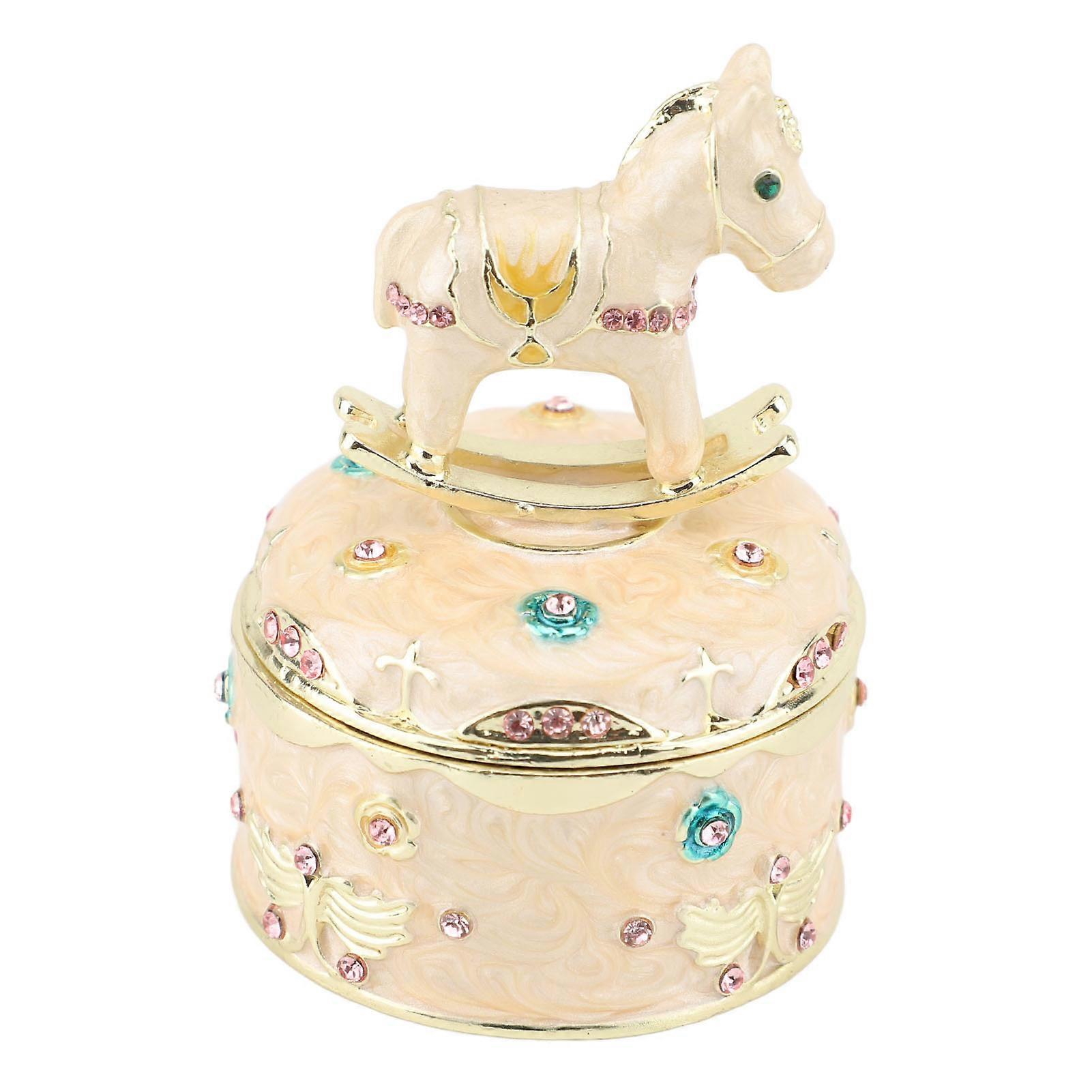 Round Pony Pattern Enameled Jewelry Box Decorative Vintage Metal Trinket Box Enameled Jewelry Organizer for Desktop and Bedroom Pink