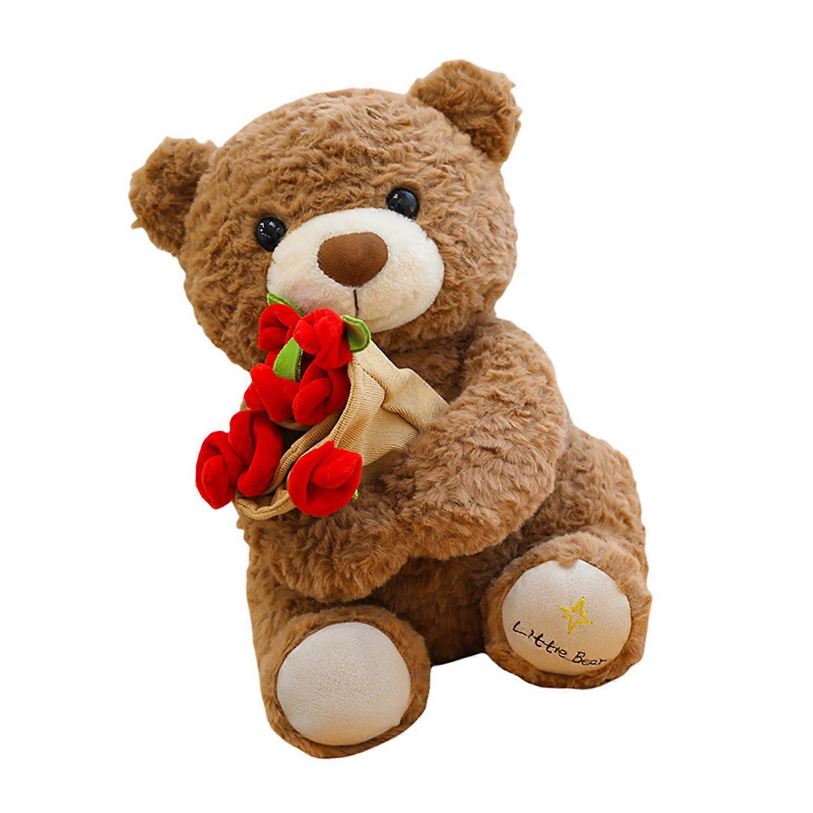Artistic Rose Embellished Bear Plush Toy Bear Shape Retention Perfect For Weddings And Special Event brown 60 cm