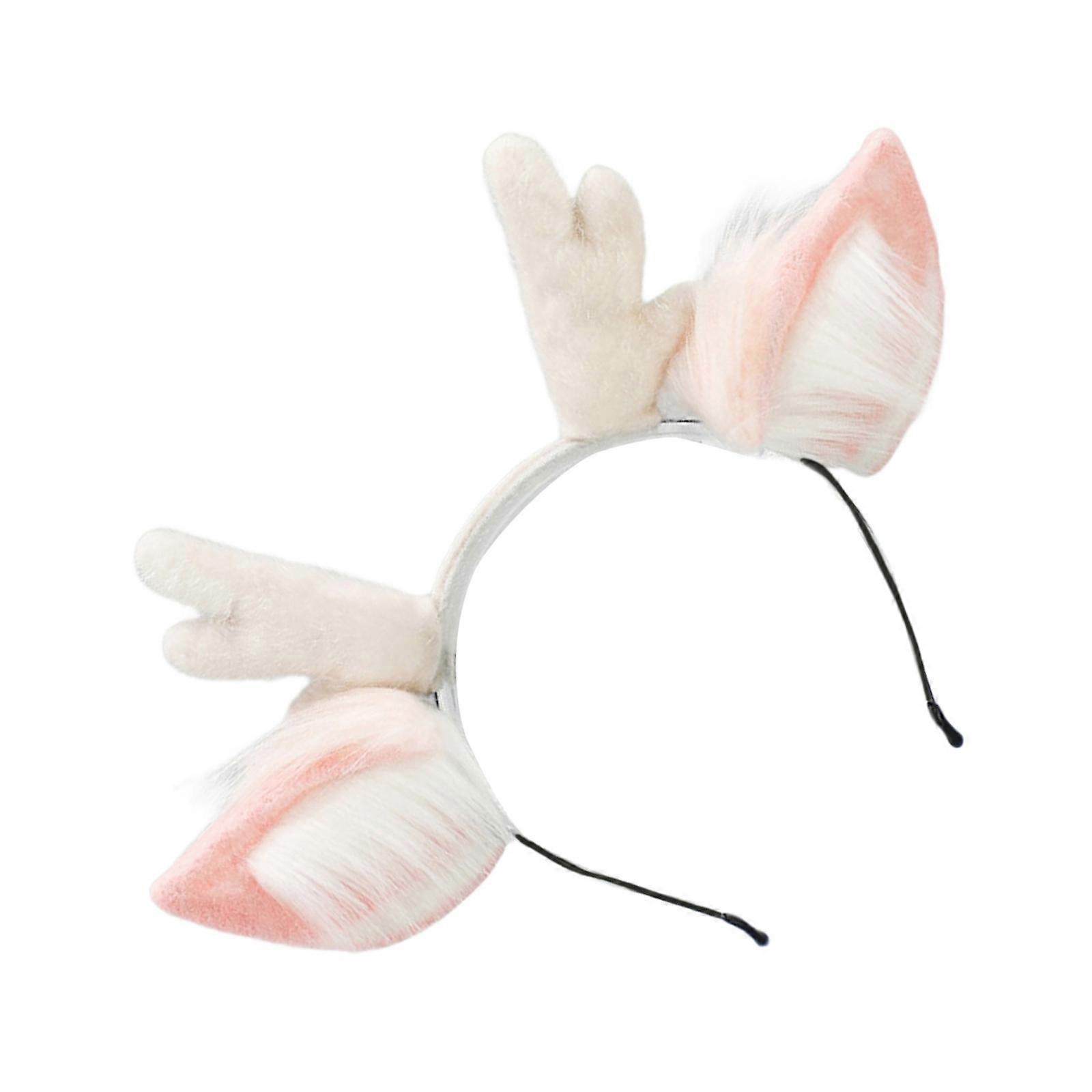 Adjustable Hairband With Faux Furs Deer Horns Seamless Design Perfect For Halloween Holiday Cosplay School Celebrations Pink white