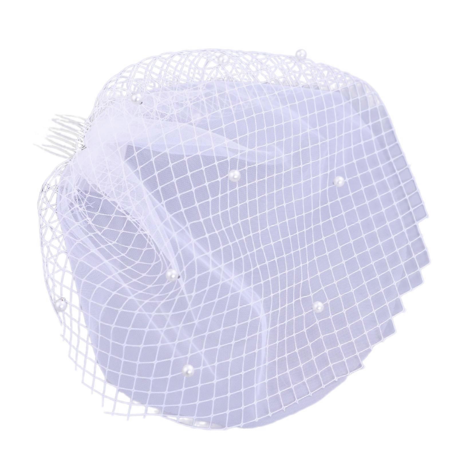 Elegant White Bridal Veil Headpiece With Pearls Decors For Wedding Photography And Church Ceremony Special Occasion White