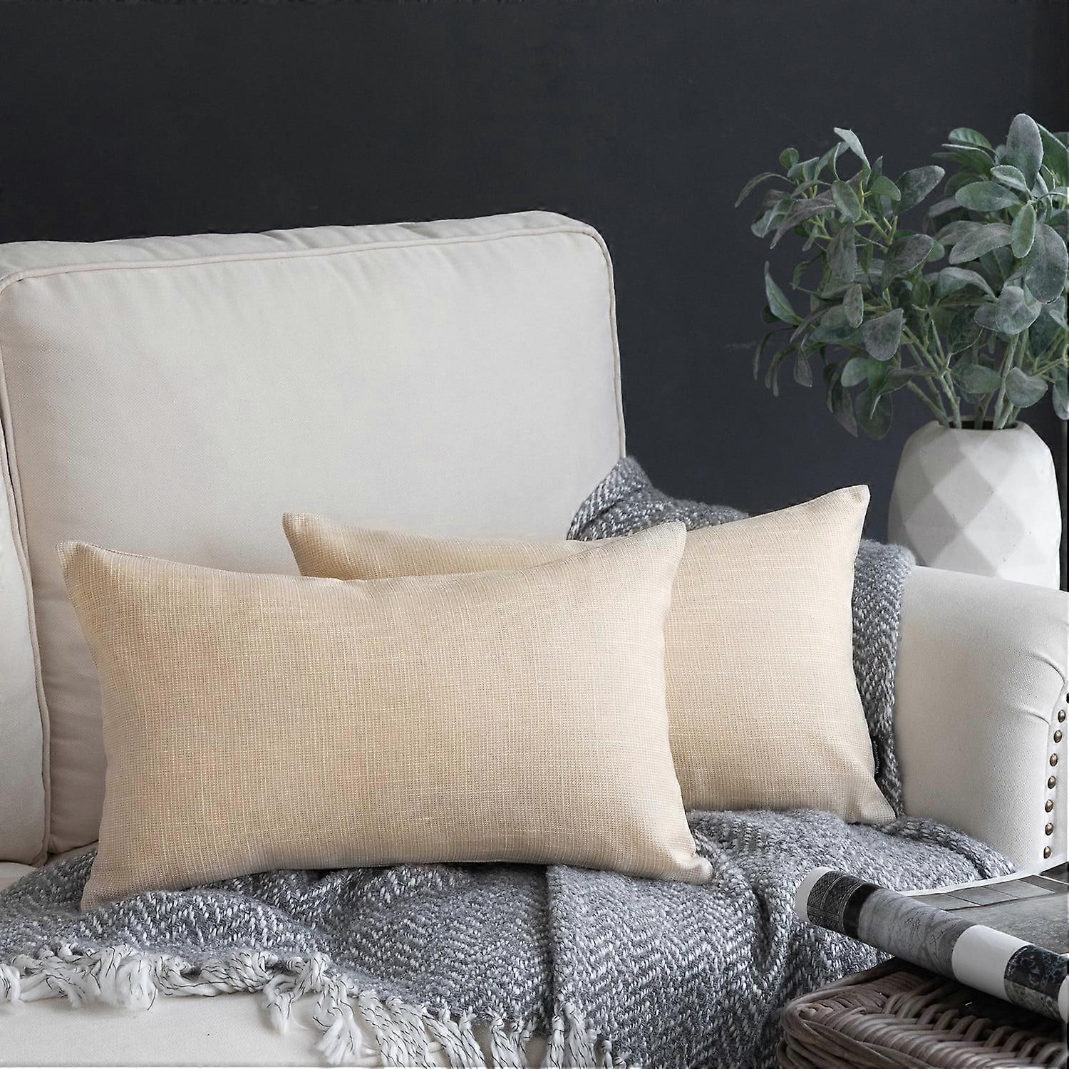 Phantoscope Soft Textured Linen Burlap Series Decorative Throw Pillow, 12" x 20", Off White, 2 Pack