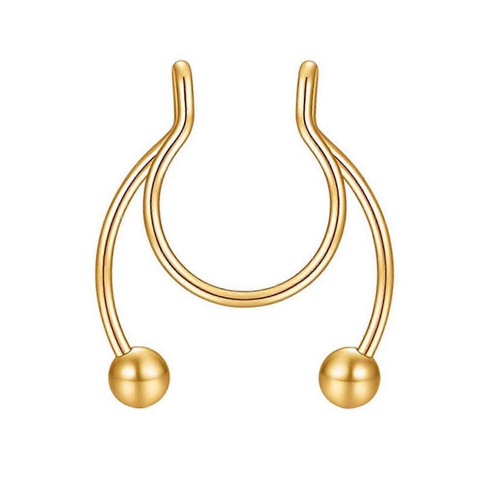 Yuehao Nose Rings Hoop 18G Clip On Non Piercing Stainless Steel Fake Septum Clicker Ring Gold for Women Men, One Size