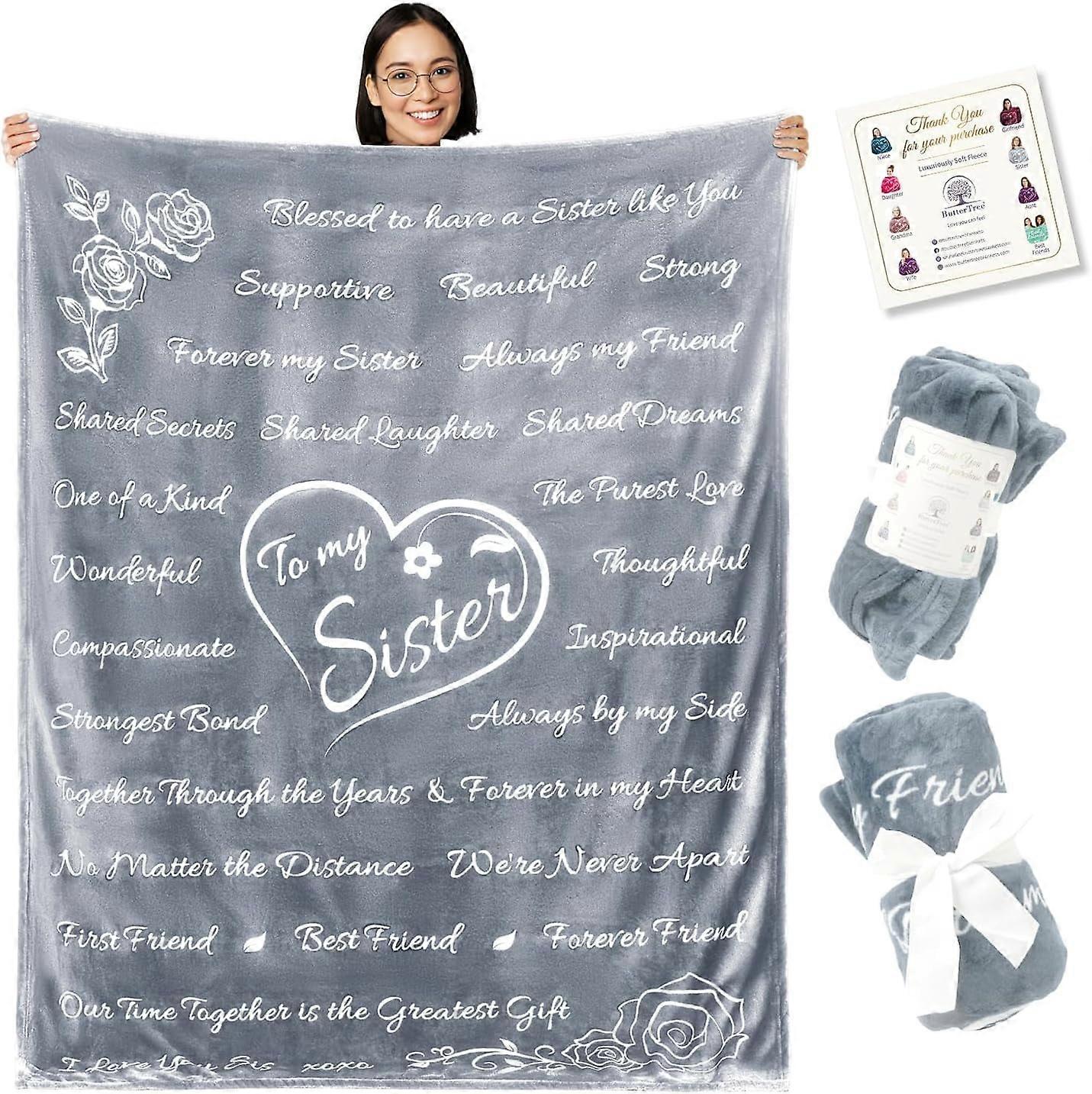 Sister Gifts Blanket 65” x 50” (Silver) – Perfect Birthday Gift for Women, Unique Throw Compatible with Cozy Home Decor