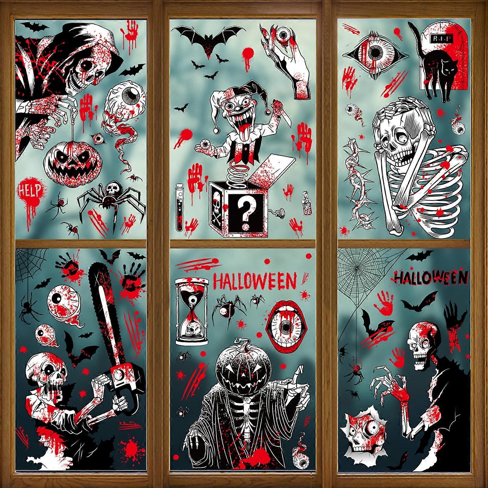SUSUchens Halloween Window Stickers Scary Handprint Zombie Skull Blood Clings Floor Decals Halloween Party Decor for Restroom Bathroom Style C