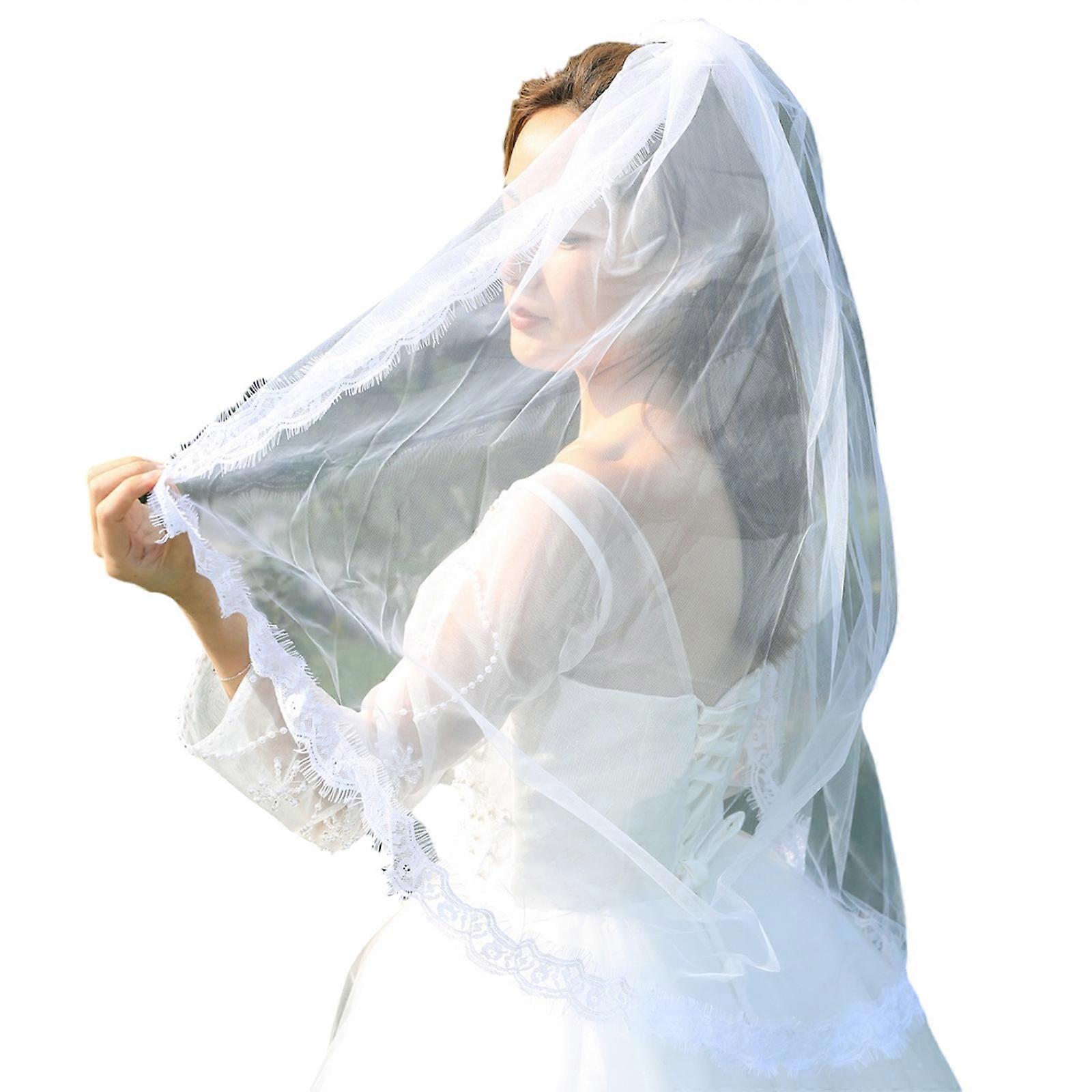 Bridal Veil Bride Mantilla Applique Lace Brimmed Applique Veil Elaborate Hair Accessory for Parties Proms Multicolor