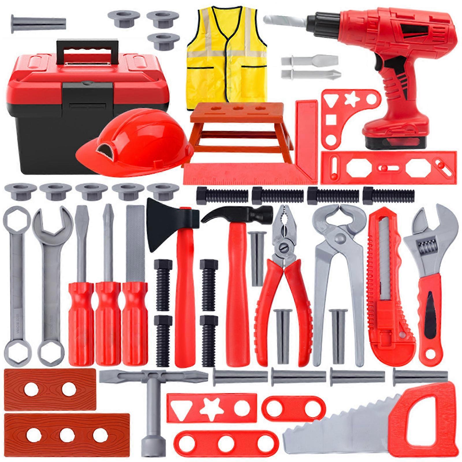 56Pieces/Set Interactive Construction Toolbox Playset With Electric Drill Vest And Storage Box For Kids Roleplaying Game Multicolor