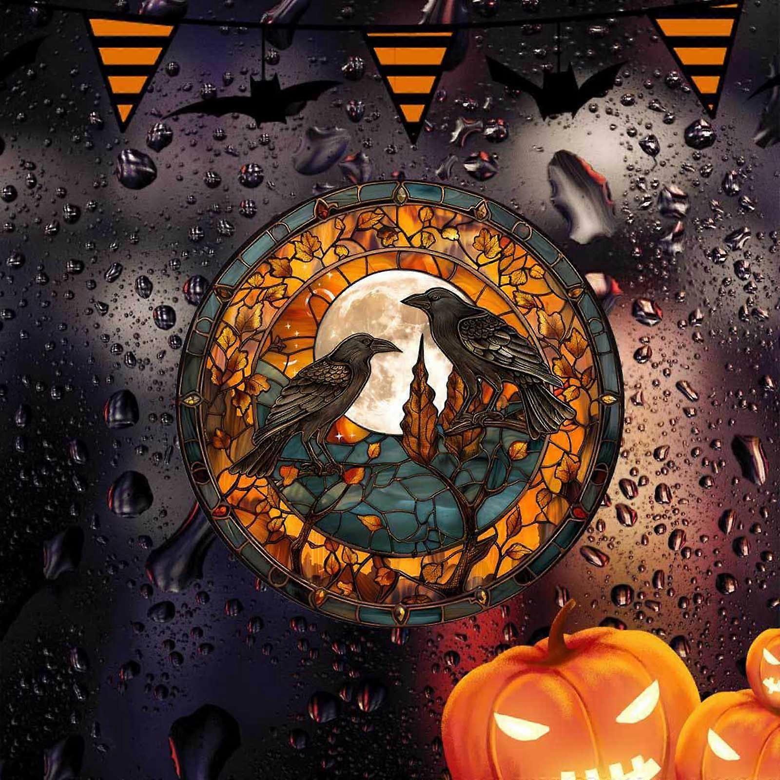 Halloween Stickers for Window, Halloween Decoration Wall Clings, Compatible with Holiday Glass Decor, Skull Cat Crow Design