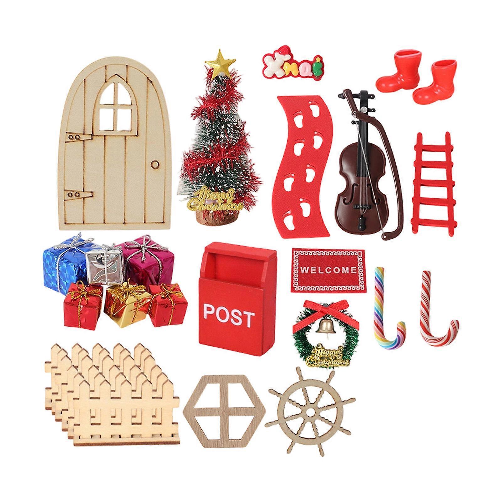 1/12 Scale Doll Christmas Decors Wooden Door Golden Star Tree Pile Of Gifts Candy Cane Welcome Plaque Home Accessories Multicolor
