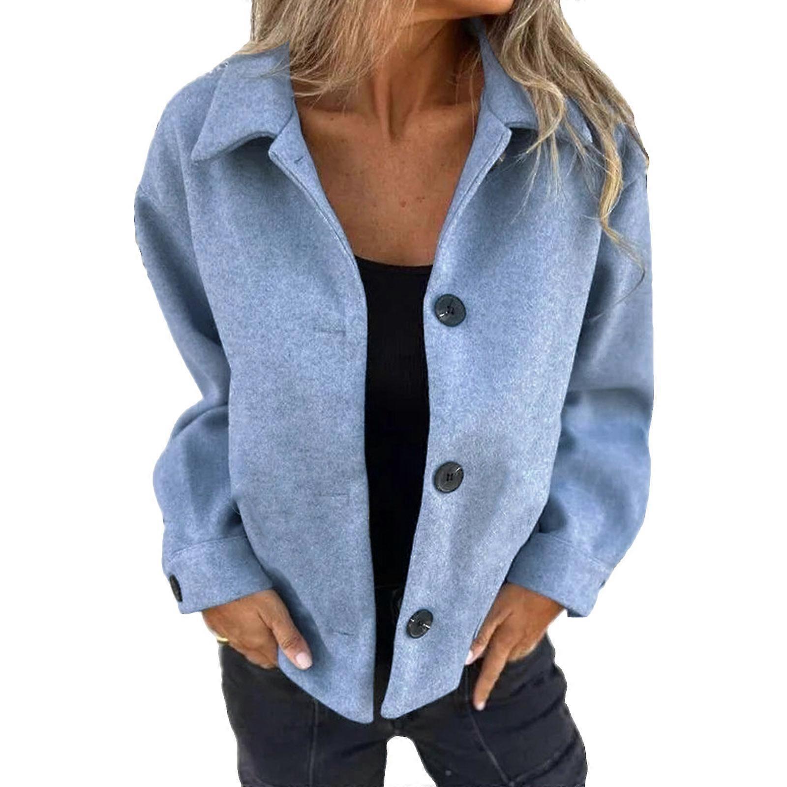 Womens Blend Coat Lapel Collar Long Sleeve Button Coat Solid Color Fall Winter Coat Sky Blue XL