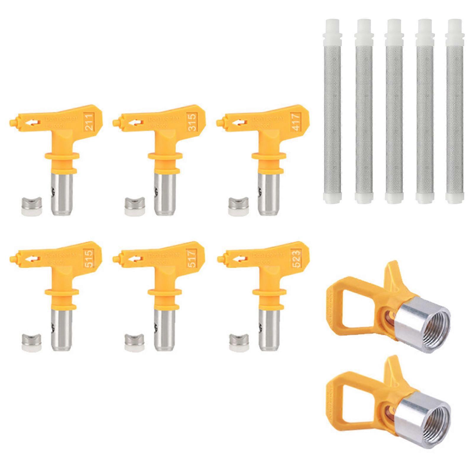 Features: This complete sprayer accessory kits includes quality nozzles, nozzle seats, and filters designed to optimize paint flows and prevent clogging during professional coating applications. Built with corrosions resistant metal components and durability plastic parts, the heat tolerant accessories feature easy installation and universally compatibility across major sprayer models. Ideal for contractors, automotive technicians, and furniture manufacturers requiring reliability equipment for high volumes painting tasks with various coatings. Perfect for achieving smooth finishes on interior/exterior construction projects, vehicle refinishing jobs, or wood furniture restoration work requiring precise sprayer. The comprehensive set ensures uninterrupted workflow by combining essential sprayer replacement parts with advanced filtration technology for noncontaminant paint application. Specifications: Component: Plastic +Metal Nozzle Size:Approx.5.5x5.5cm/2.17x2.17inch Nozzle Seat Size:Approx.6.14x5.54cm/2.42x2.18inch 3Option Type; This set includes quality airless sprayer nozzles, nozzle seats and filters Package Includes: Package A 4pcs Paint Sprayer Nozzle Package B 6pcs Paint Sprayer Nozzle 1pc Nozzle Seat Package C 6pcs Paint Sprayer Nozzle 2pc Nozzle Seat 5pcs Nozzle Filter note: Please allow 1-3cm errors due to manual measurement. Due to the differences between different monitors, the picture may not reflect the actual item color.
