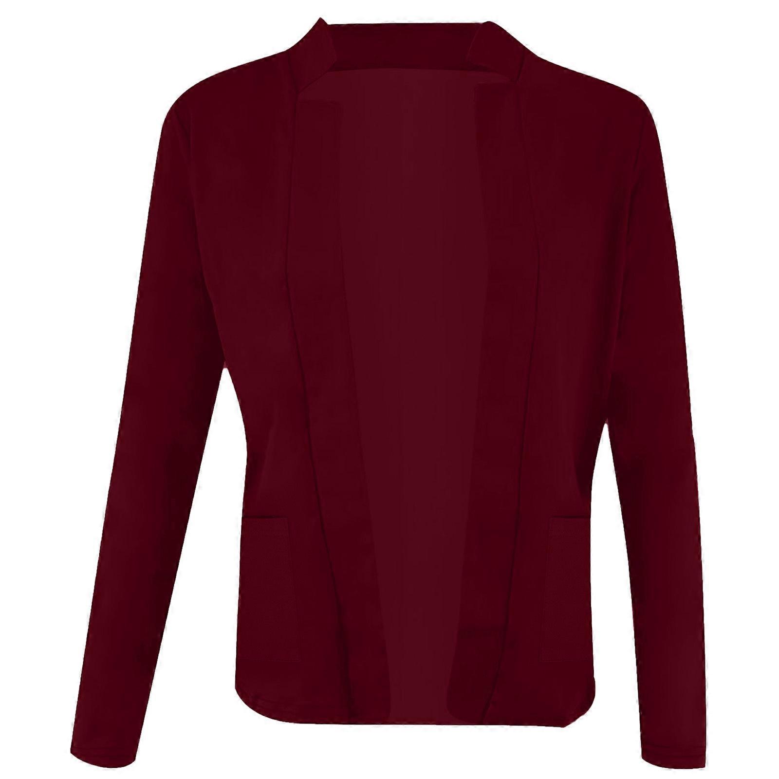 Modern Women's Single Breasted Suit Jacket Smooth Polyester Constitute Cosy Design Business Casual Office Burgundy XL