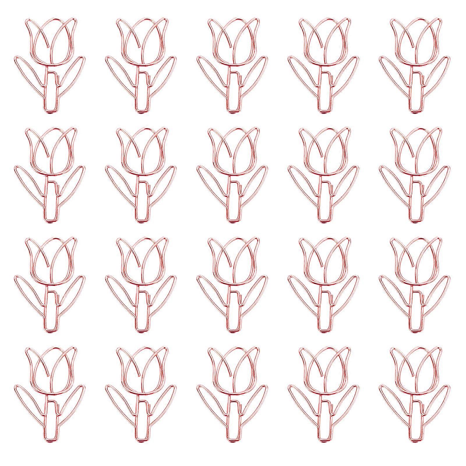 20 Pcs Tulips Shape Paper Clips Bookmarks Creative Planner Clips Metal Decorative Paper Clips for Home Office School Rose Gold