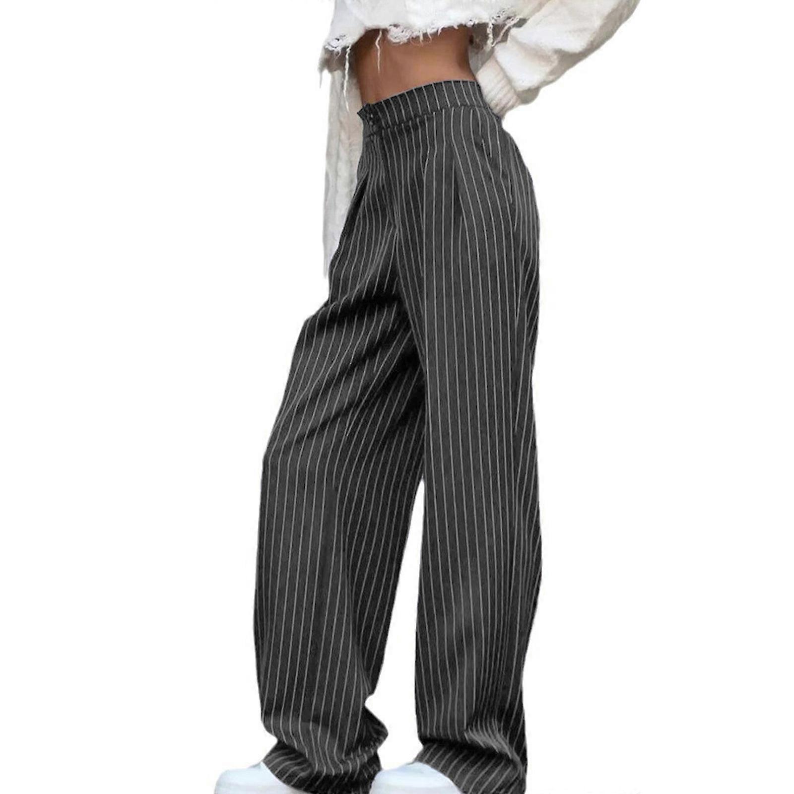 Women Stripe High Waist Palazzo Pants Fall Casual Wide Leg Trousers Loose Work Office Business Suit Pant with Pockets Gray XL