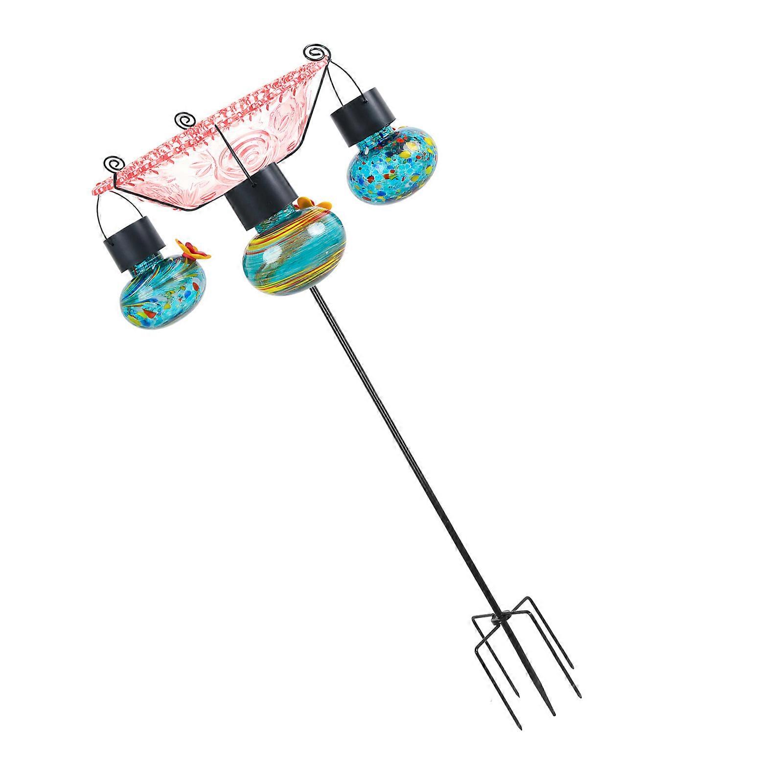 Hummingbirds Feeding Station Solar Powered Stake Mount Weatherproofed for Patios Bird Watching Red