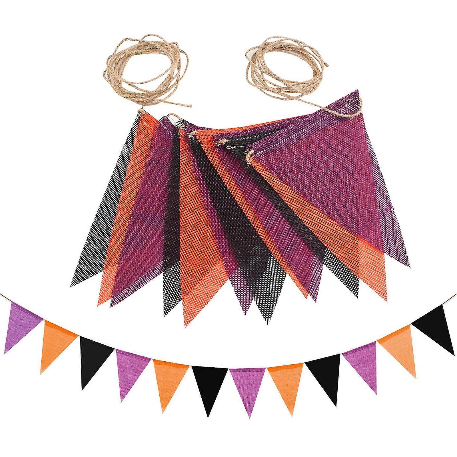 12Pcs Burlap Bunting Flags Multicolored Hemps Pennant Festival Decoration For Christmas Birthdays Camping Event Purple orange black