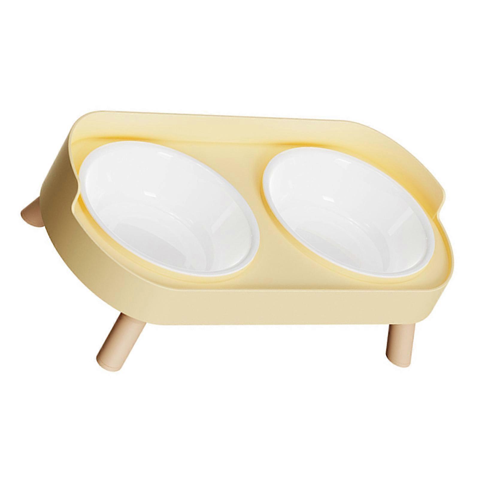 Cats Dog Double Compartment Raised Pet Food Water Dish Set Nontoxic Plastic Easy Cleaning Design For Small Animals Yellow