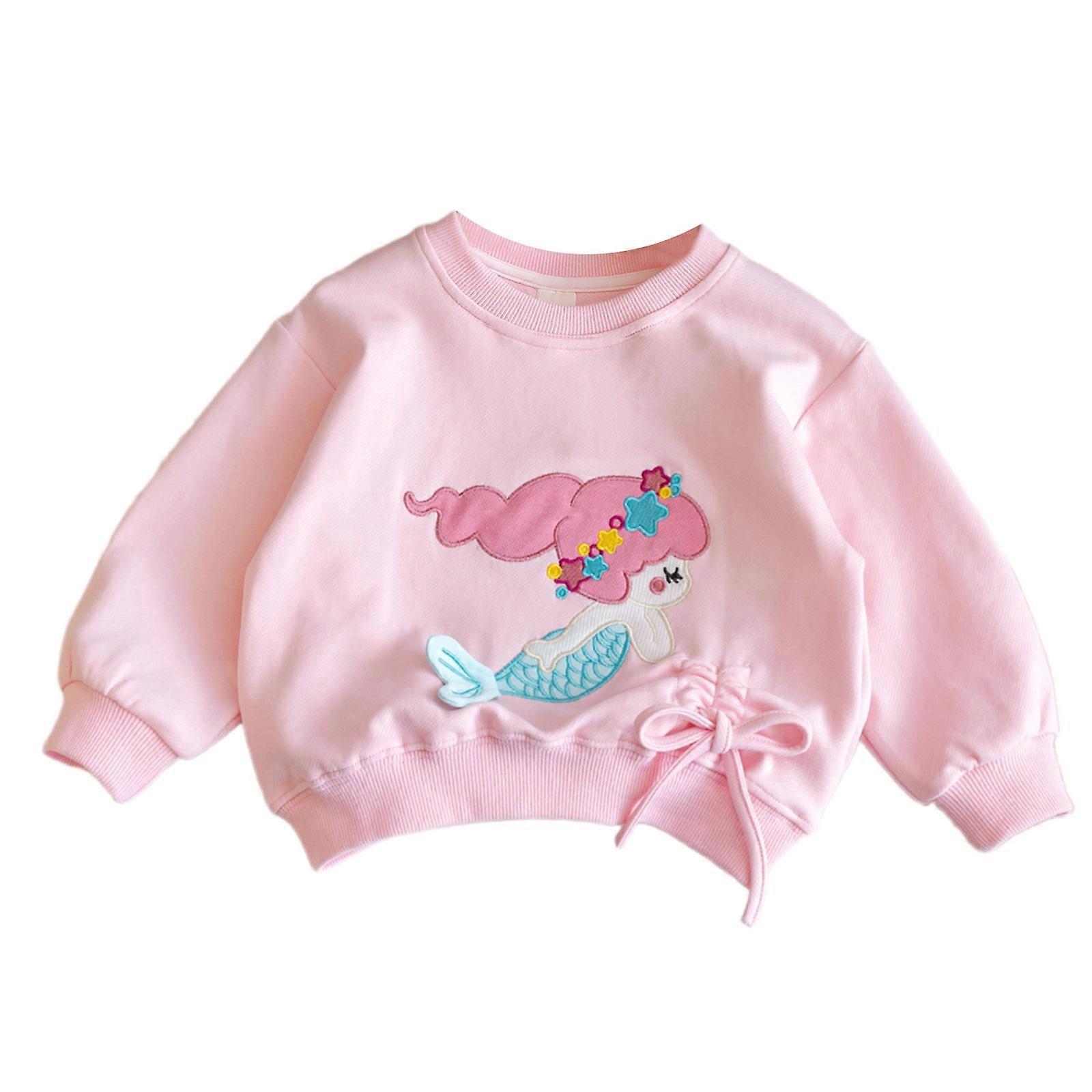 Infant Girls Sea-maid Print Long Sleeve Cotton Blend Sweatshirt Soft Casual Top For Everyday Play And Theme Parties Pink 90cm