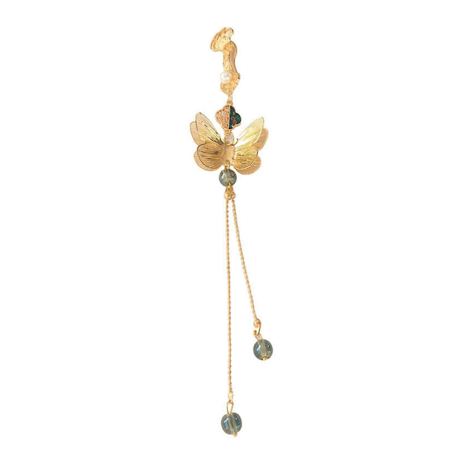Metallic Butterfly Pin Adjustable Tassels Drop Handmade Clothing Jewelry Perfect for Cheongsam Evening Gown or Casual Multicolor