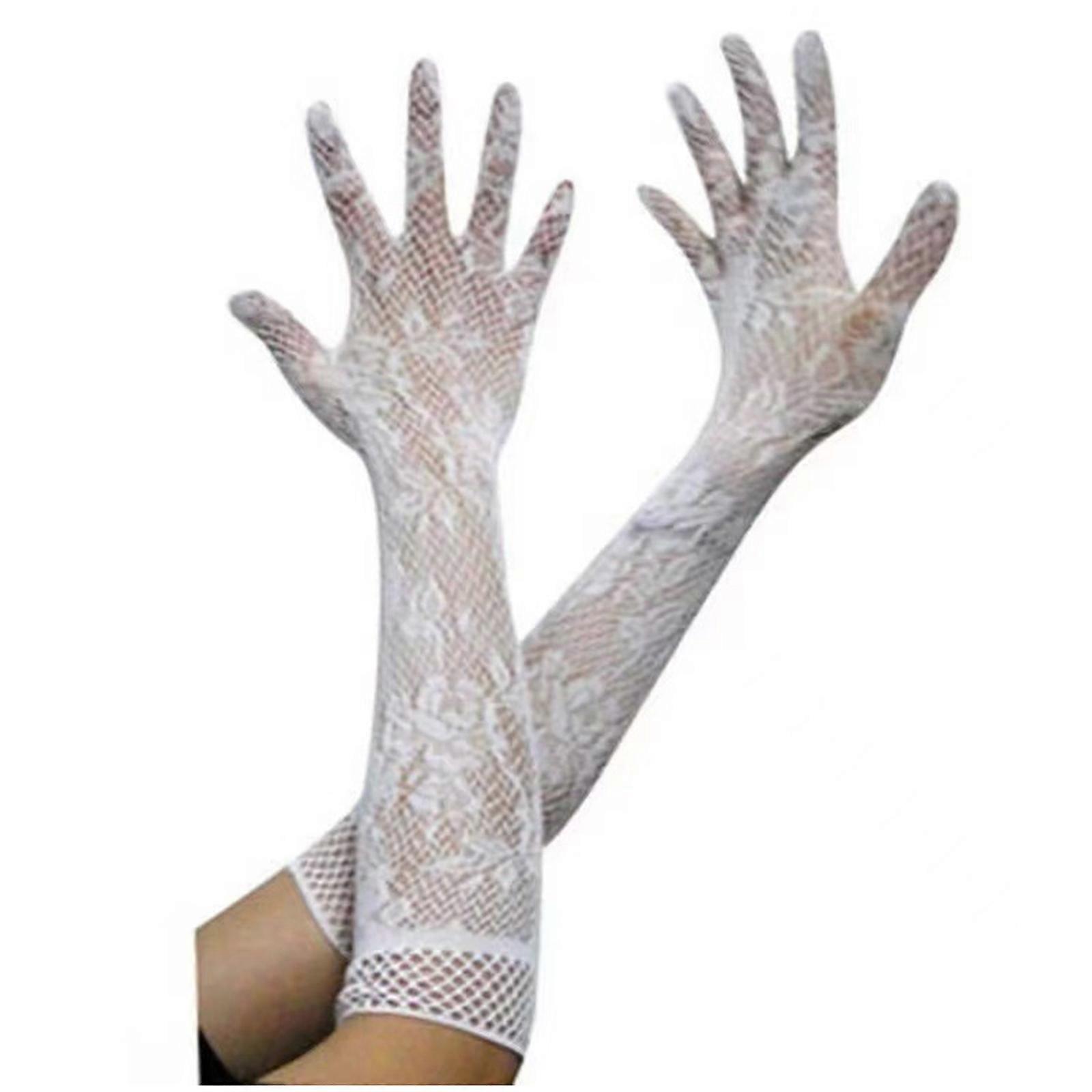 Women Lace Flower Gloves Breathable Net Arm Gloves for Theme Event Dress Masquerades Party Costume Handwear Accessories White