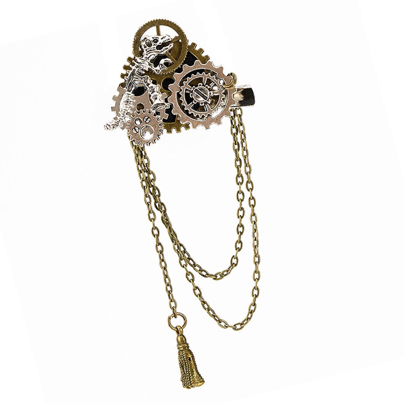 Punk Mechanical Gear Hairpin Metal Barrettes Brooch Pin With Long Fringed Chain Fashion Women Anime Costume Accessory Gold