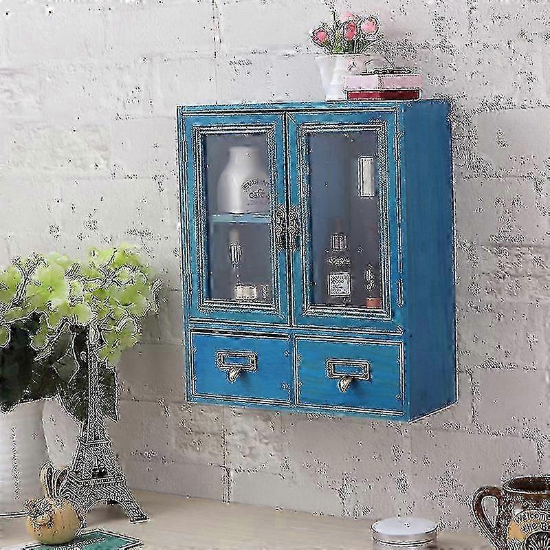 Wooden Bedside Storage Cabinet with Organizer & Wall Display Vintage Style