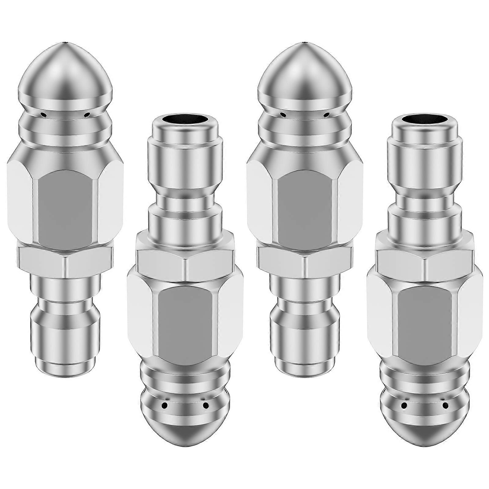 FUYGRCJ 2/4Pcs Sewer Cleaning Nozzle, Stainless Steel High Pressure Nozzle 1 Front 6 Rear, 1/4inch Compatible with Pressure Washer Drain Jetter
