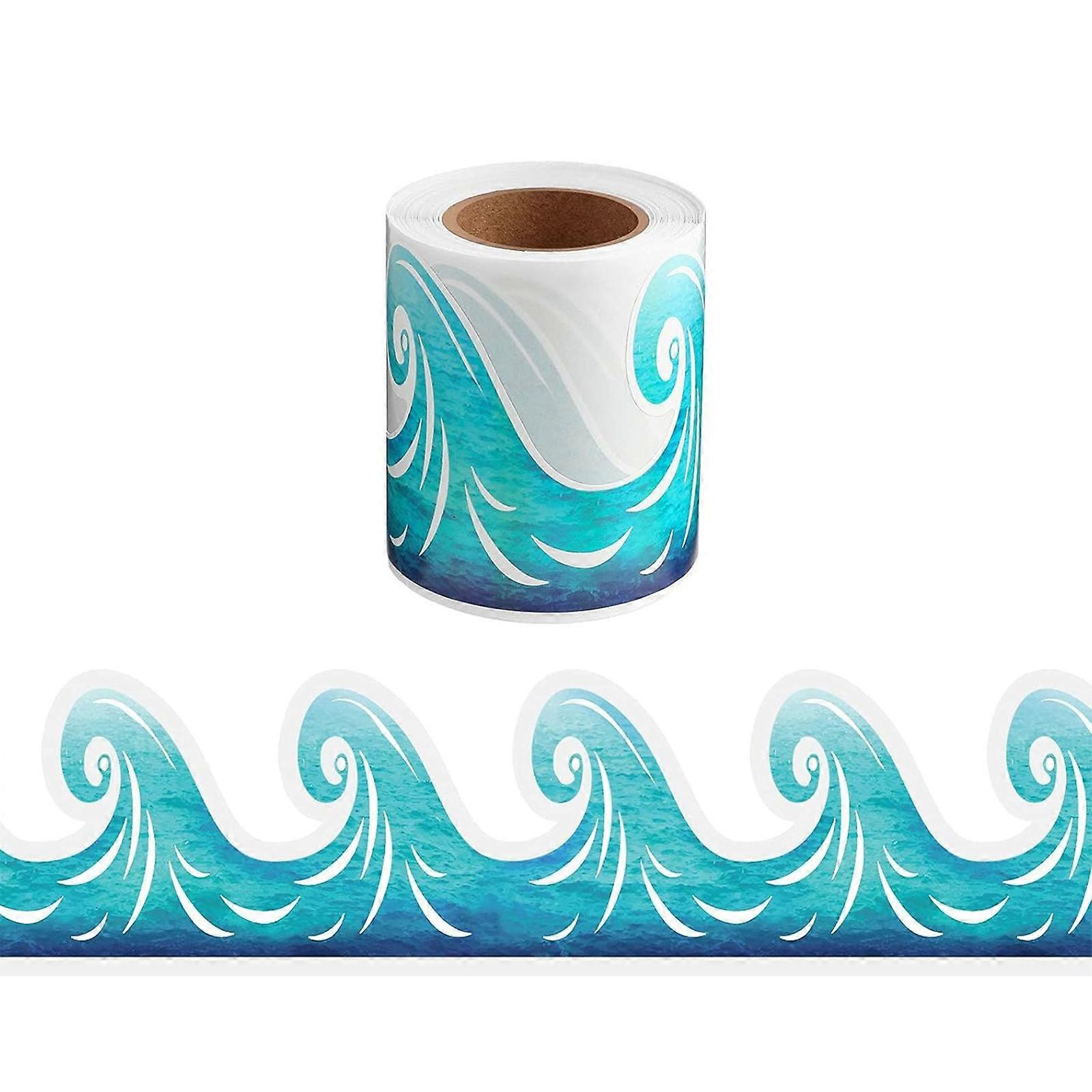 15m Blue Waved Classroom Borders Adhesive Bulletin Board Borders Back-to-School Bulletin Board Trim Decorations Multicolor