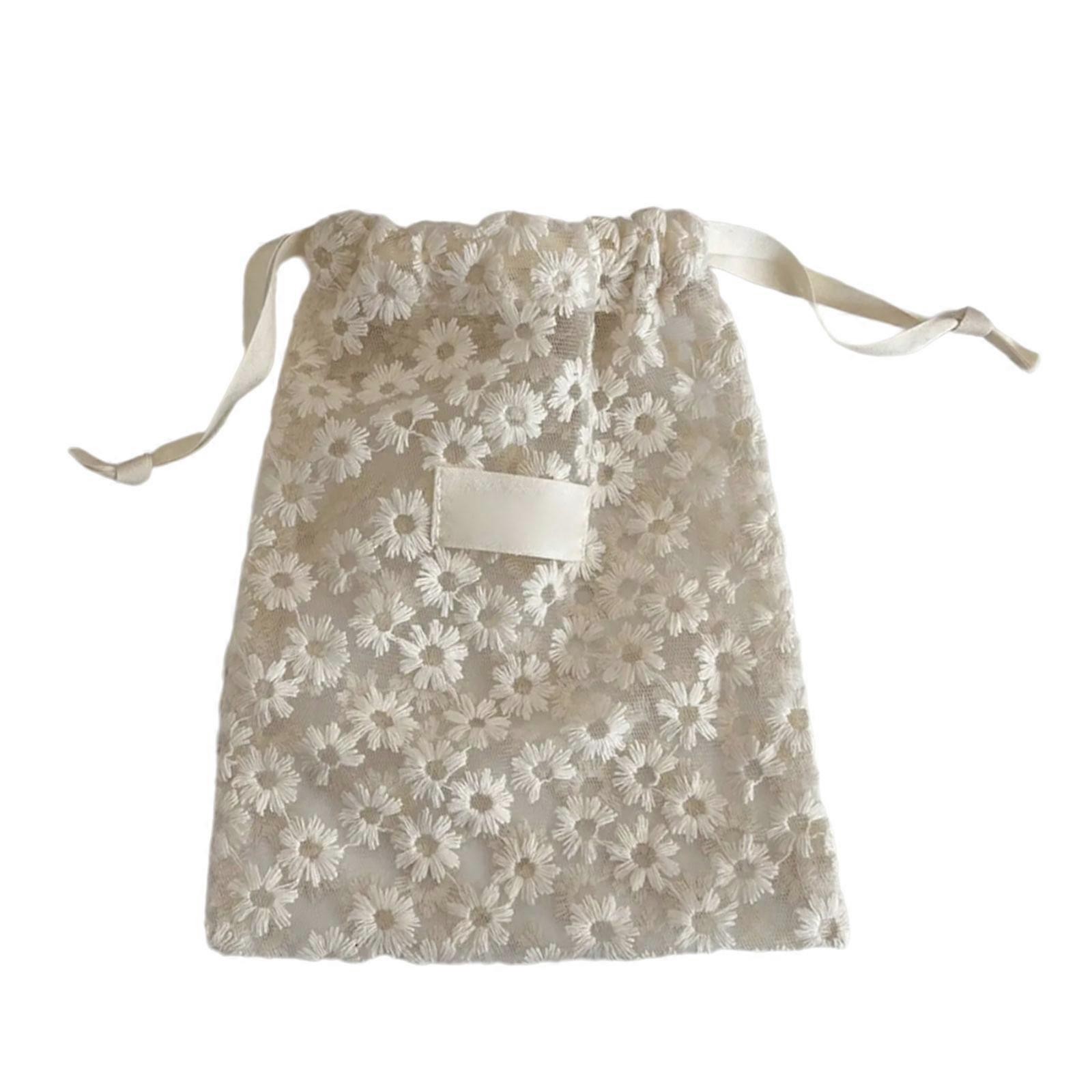 Decorative Embroidery Meshes Organizers Bag Secure Drawstring Closure Portable Cosmetic Storage Portable Travel Accessory Small