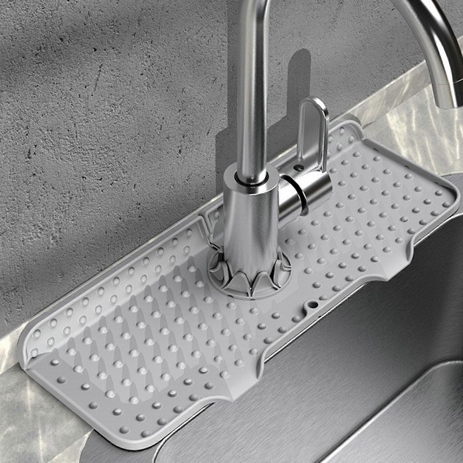 WJSXC Silicone Sink Faucet Mat, Gray - Splash Guard & Drain Pad for Kitchen & Bathroom, Compatible with Standard Faucets