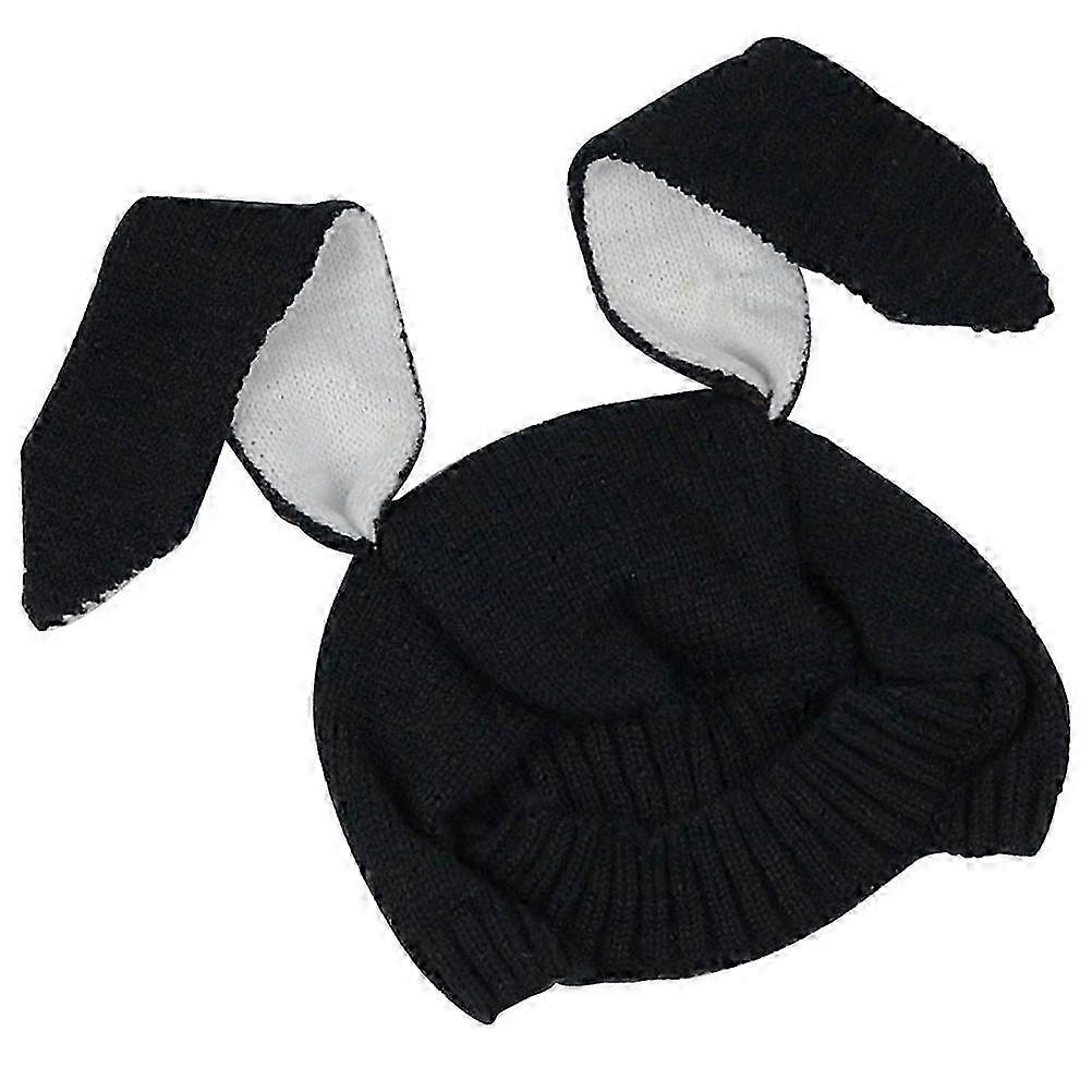 Infant Rabbit Earflap Hat, Unisex Warm Baby Hat Black