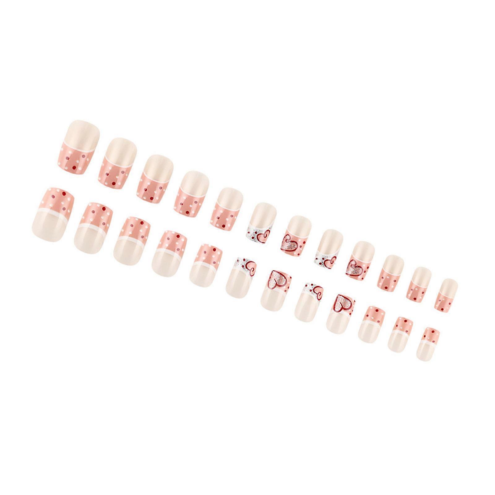 24 Pieces Short Square Valentine's Day Press on Nail Pink French Tip Love Heart Glitters False Nail for Women Manicure Multicolor