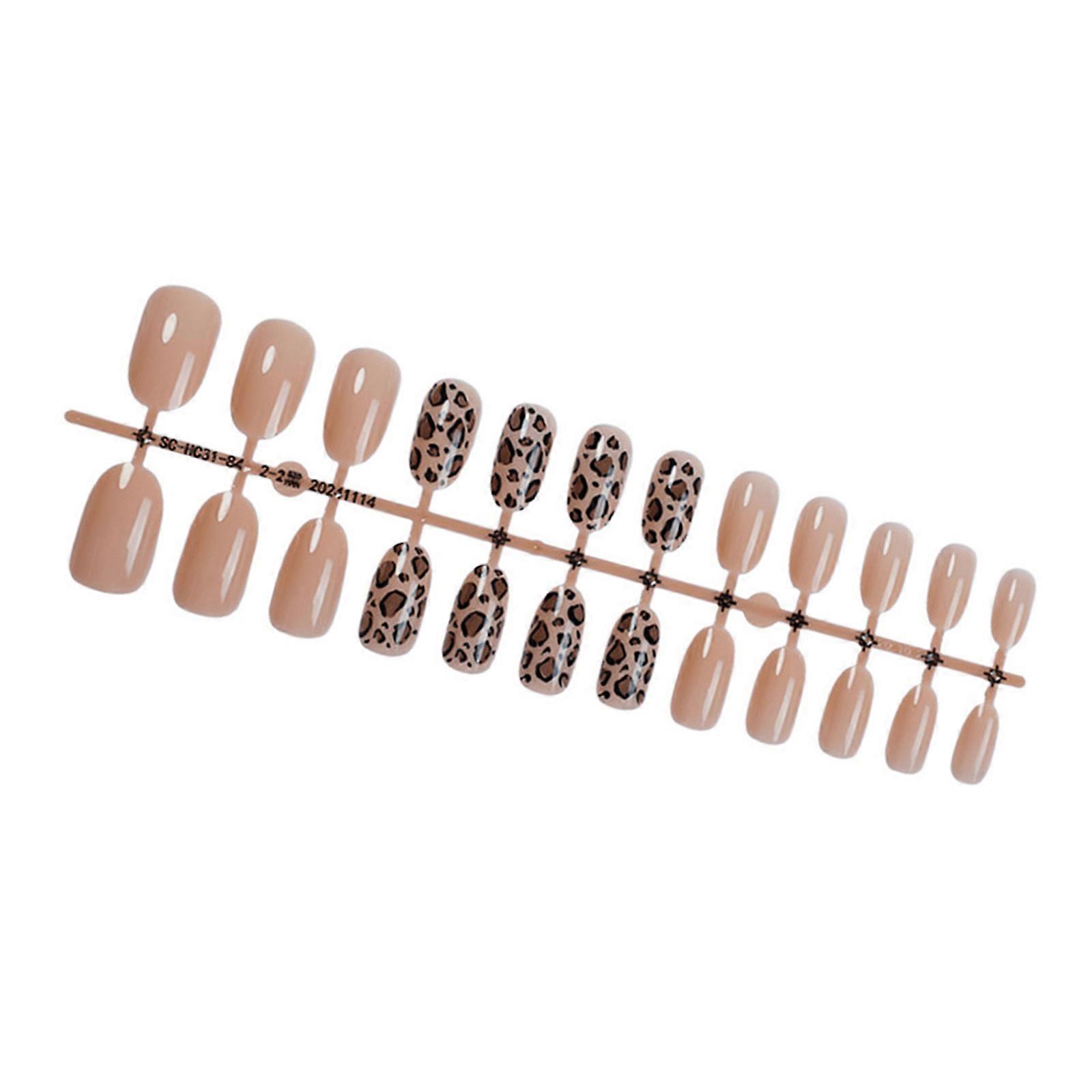 Leopard Print Nail 24 Pieces Short Almond False Nail Full Cover Press on Nail Easy Application For Fashion Enthusiasts Multicolor