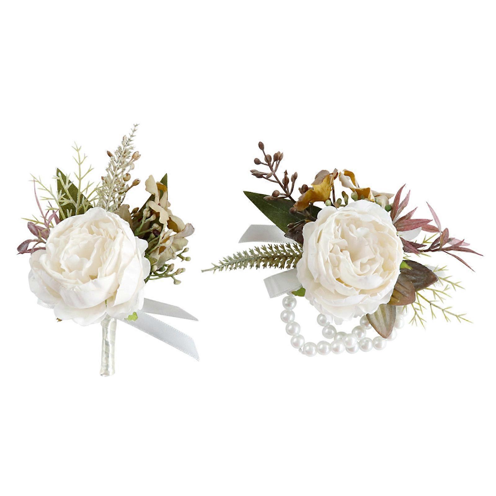 Artificial Flower Champagne Color Wrist Corsage and Boutonniere Set for Special Occasion Formal Meeting Chest Flower Multicolor