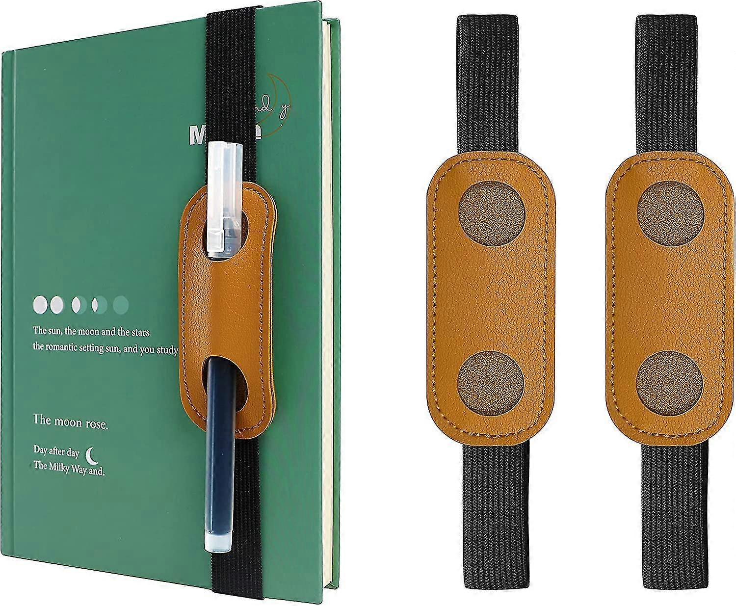 2-Pack Leather Portable Elastic Pen Holder, Pencil Pouch for Apple Pencil, Hardcover Journals, Notebooks, Happy Planner