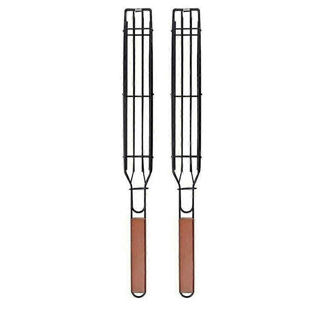 Pack of 2 Grilling Basket Barbecue Mesh Wood Handle Reusable BBQ Kitchen