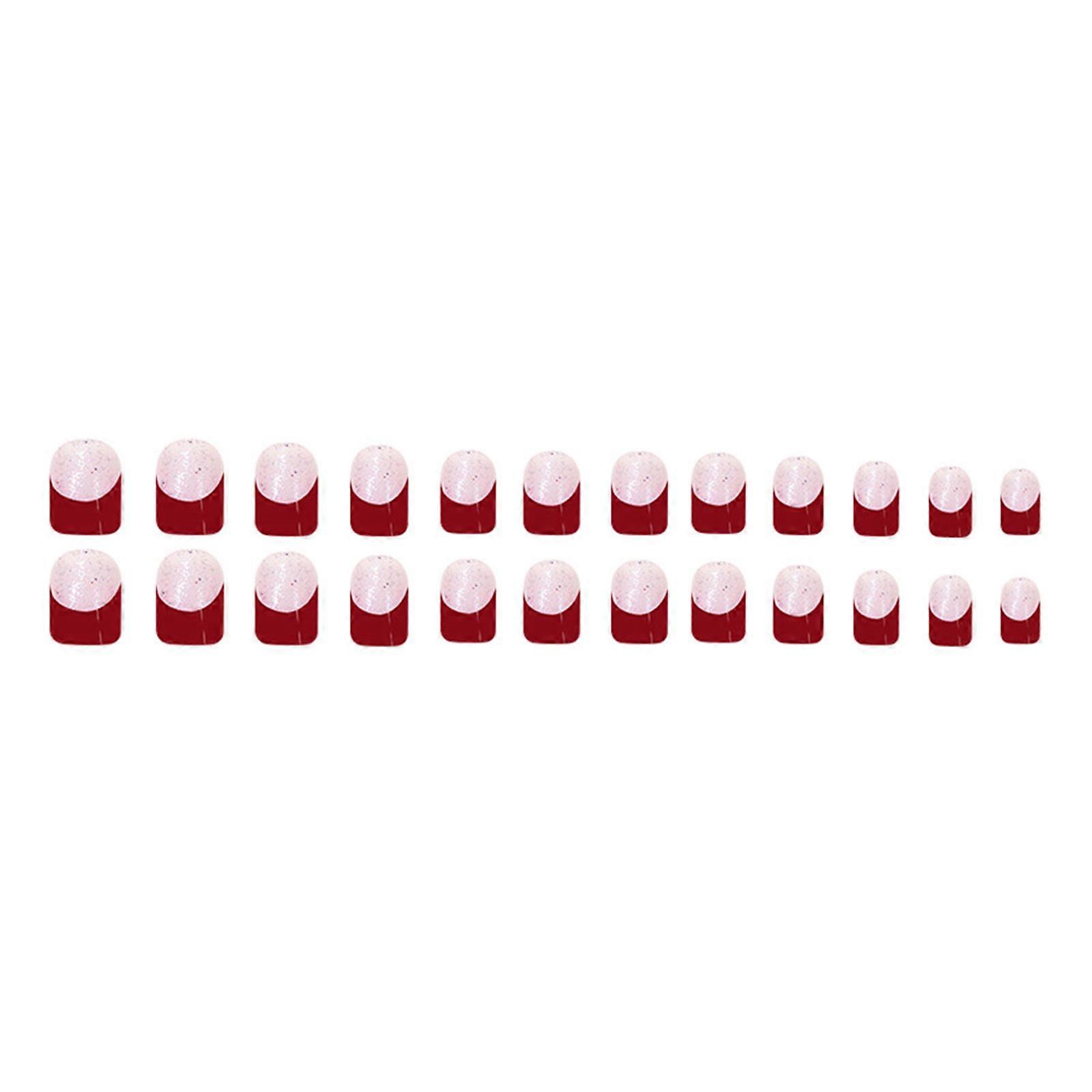 24 Pieces Autumn False Nail Short Square French Tips with Glittering Acrylic Nail for Women Manicure Nail Accesories Multicolor