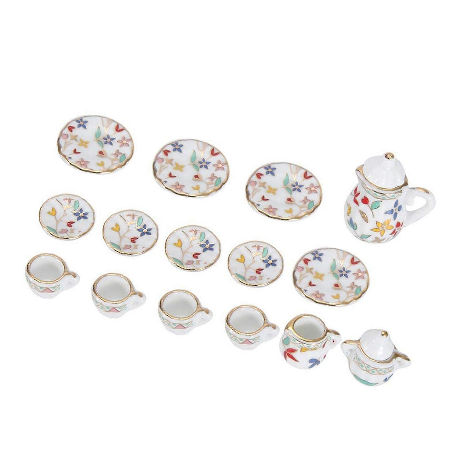 1:12 Scale Miniatures Dollhouses Kitchen Accessories Mini Teapot Cup Plate Set 15Pcs Flower Pattern Porcelain Teacup Set Multicolor