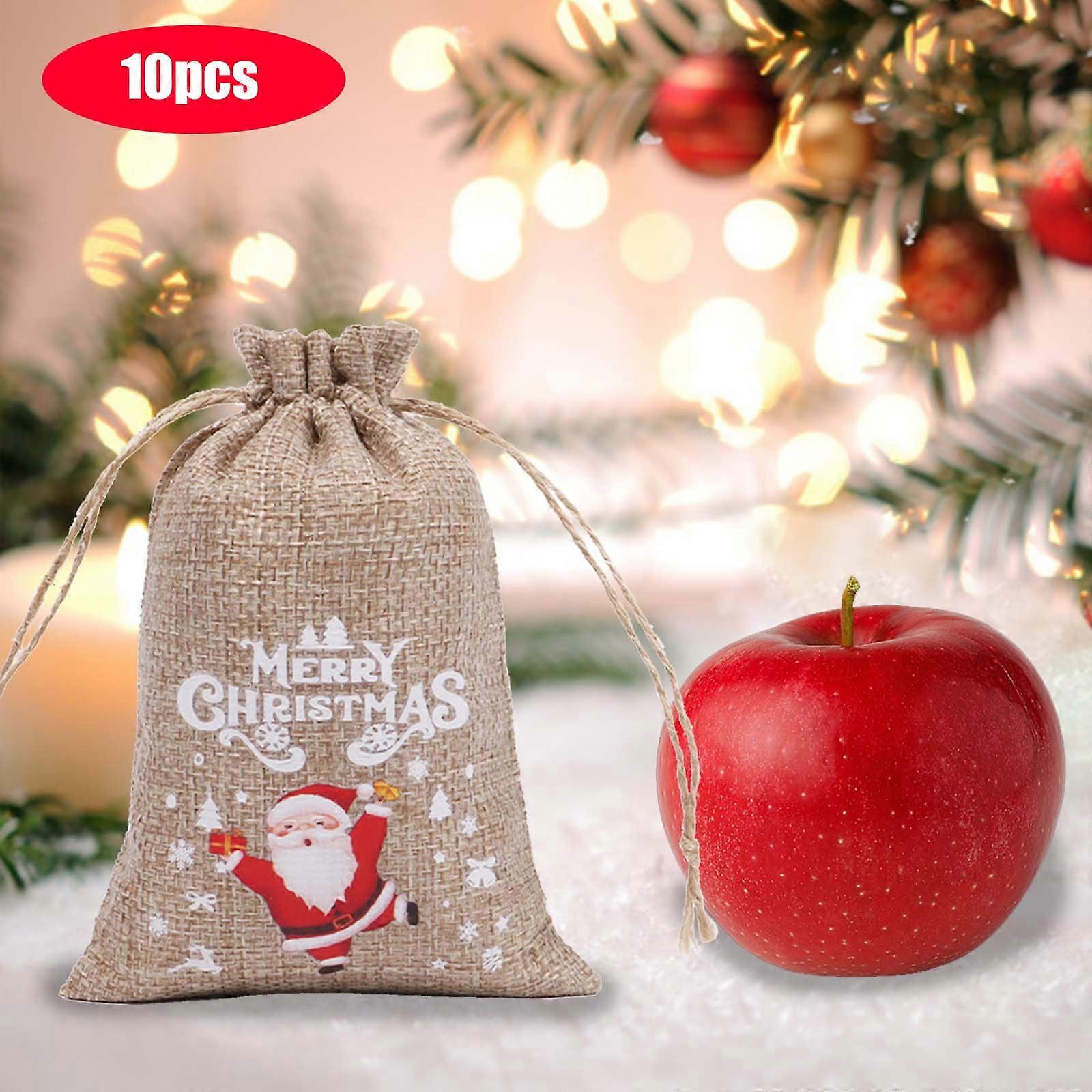 10 Pcs Christmas Gift Bags, Candy Snack Drawstring Bags, Handbag for Party Supplies, Decorations & Gifts – Compatible with Bocqde