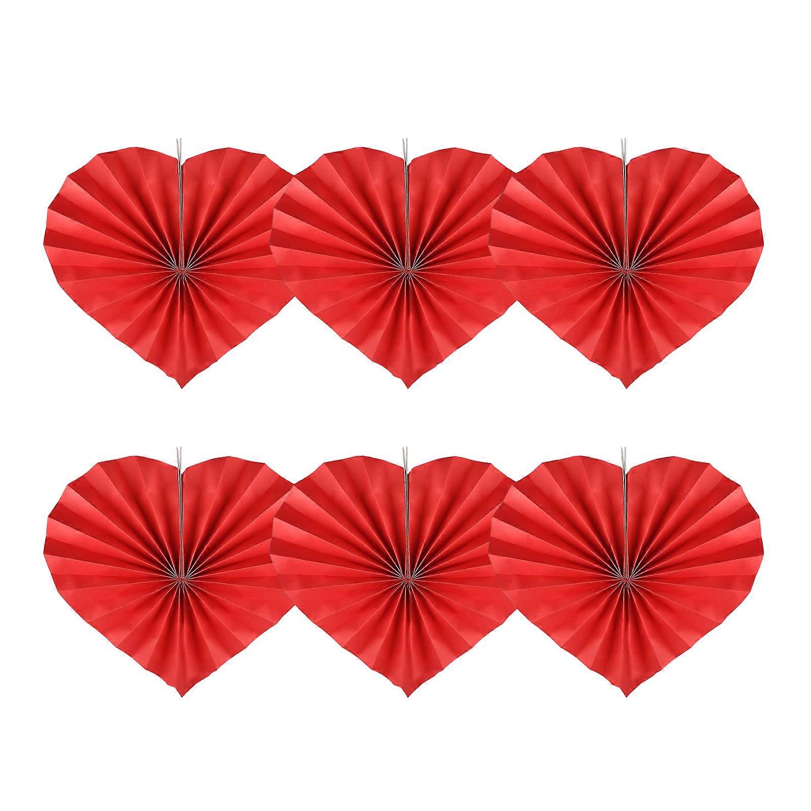 Set Of 6 Love Heart Shaped Folding Fan Paper Hangings for Birthday and Holiday Celebration Wedding Party Decoration Multicolor