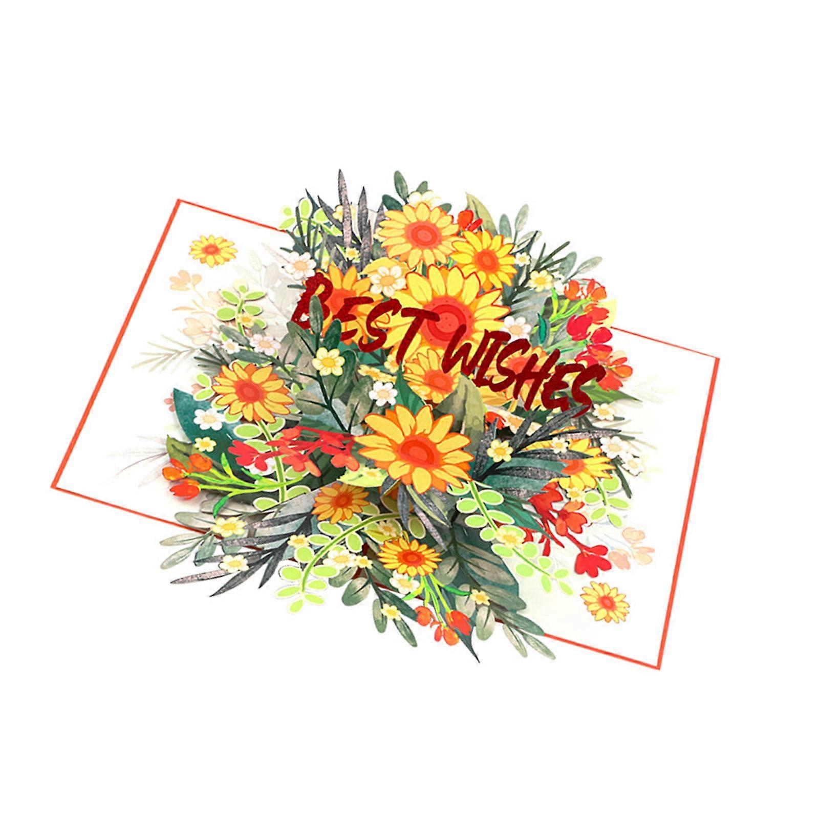 Handmade 3D Sunflowers Greeting Card Elegant 3D Sunflowers Popup Card Durable Paper Card for Weddings Anniversaries Multicolor