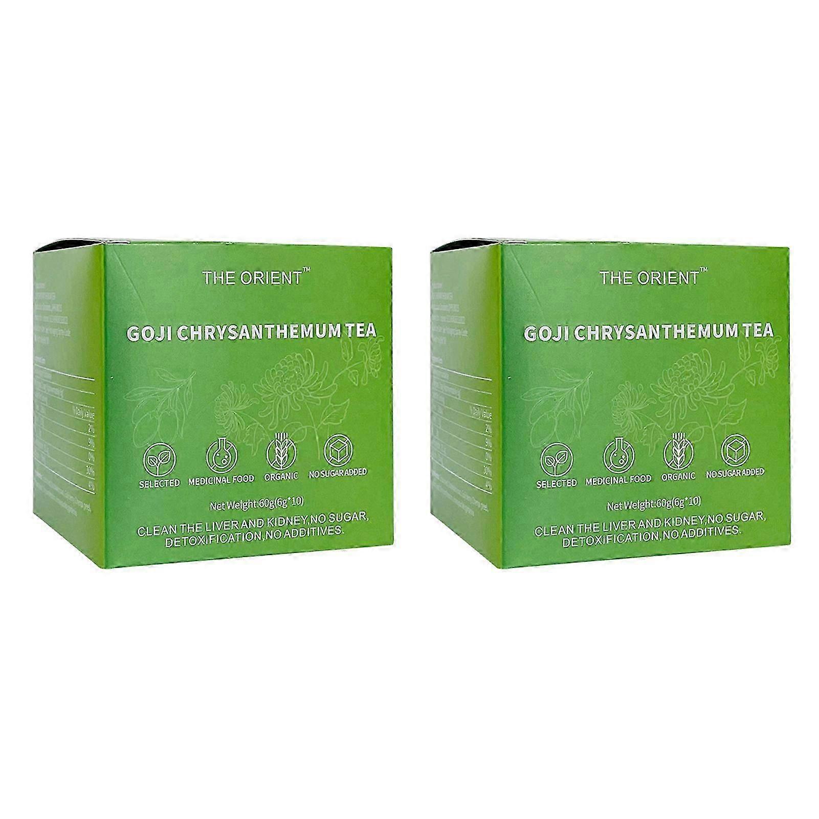 Features: Health-Benefits: This tea combines chrysanthemum flowers and goji-berries, known for their antioxidant-rich properties that support immune health and promote overall well-ness. Refreshing Flavors: The tea has a delicate floral taste from the chrysanthemum, balanced with the subtle sweetness of goji-berries, offering a soothing and refreshing drinking experience. Natural Ingredients: Made with all-natural, high-quality chrysanthemum flowers and dried goji-berries, free from artificial additives or preservative. Eye Health Support: Both chrysanthemum and goji-berries are traditionally used in herbal medicine to support eye health and improve-visions. Stress Relief: The calming properties of chrysanthemum combined with goji-berries are believed to help reduce stress, relax the mind, and promote restful sleep. Notice: 1.Actual color may be slightly different from the image due to different light effect. 2.Please allow 1-3cm deviation due to manual measurement. Specification: 10 packs/box Package List: 1/2/3 Boxes Chrysanthemum Goji-Berry Tea