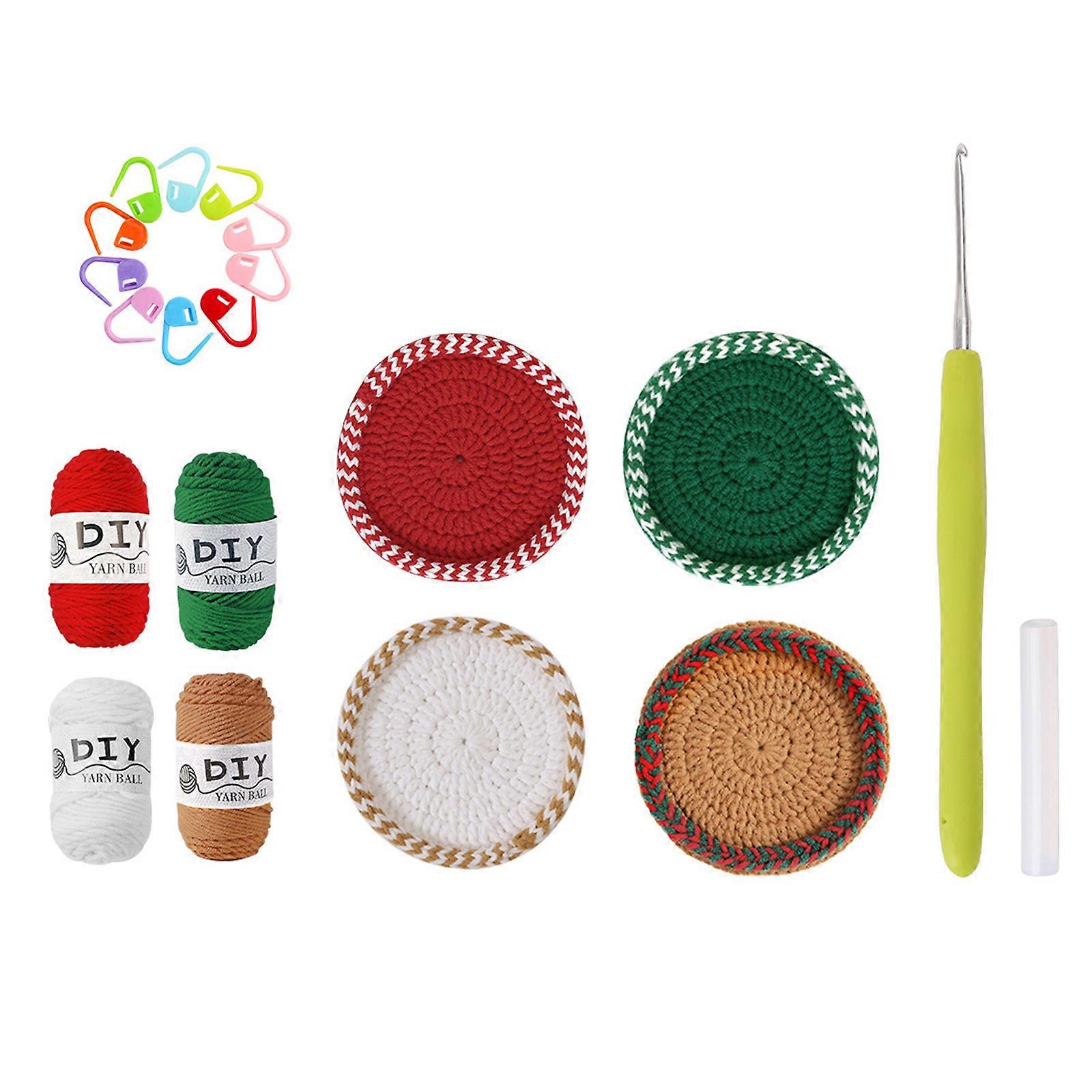 Christmas Coaster Crochet Kits Crochet Starter Kits Handmade Crochet Yarn Set with Crochet Hook Thread Stitching Markers Multicolor