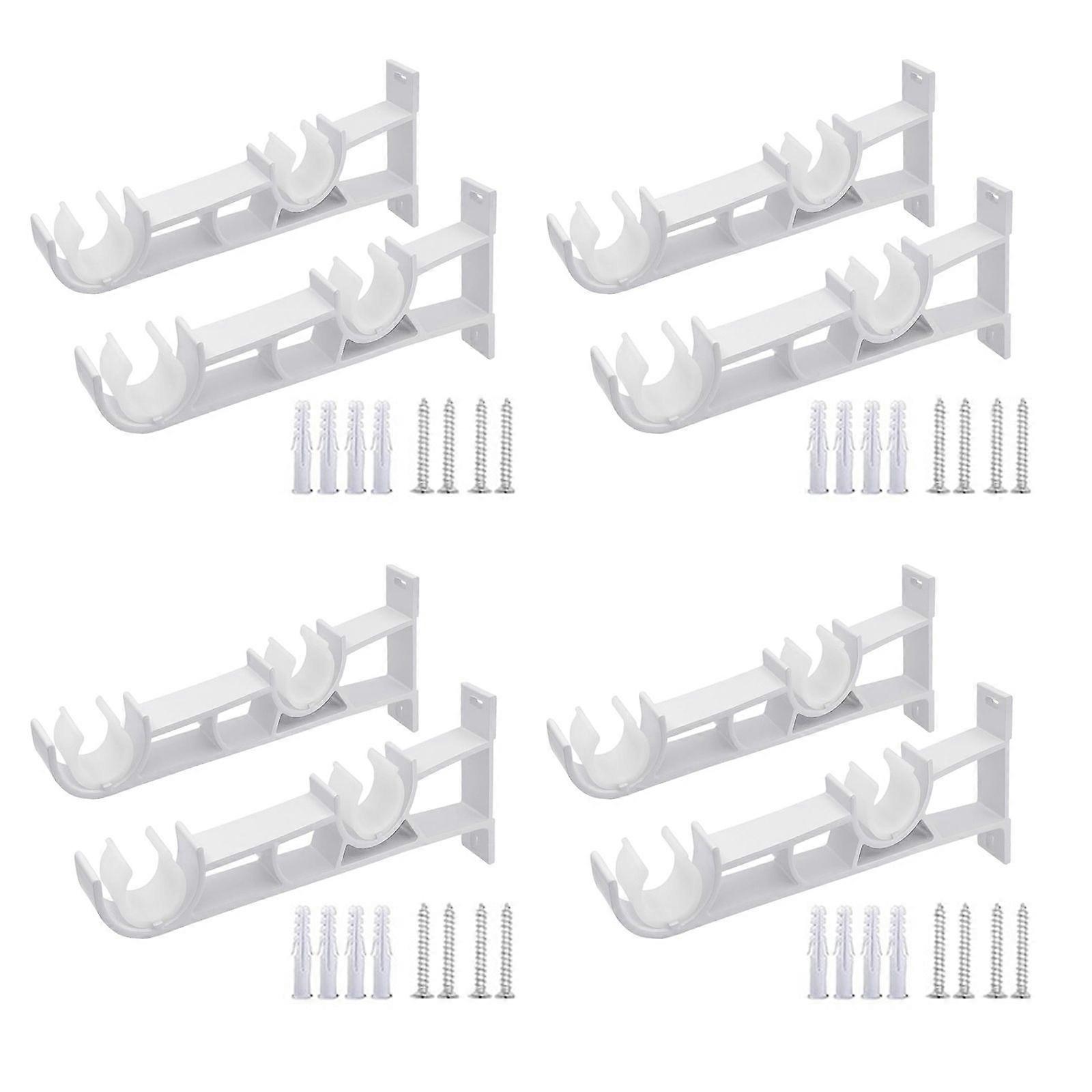 8 Pack Double Curtain Poles Holder White Metal Drapery Rod Support Wall Brackets with Screws for Living Room and Bedroom Multicolor
