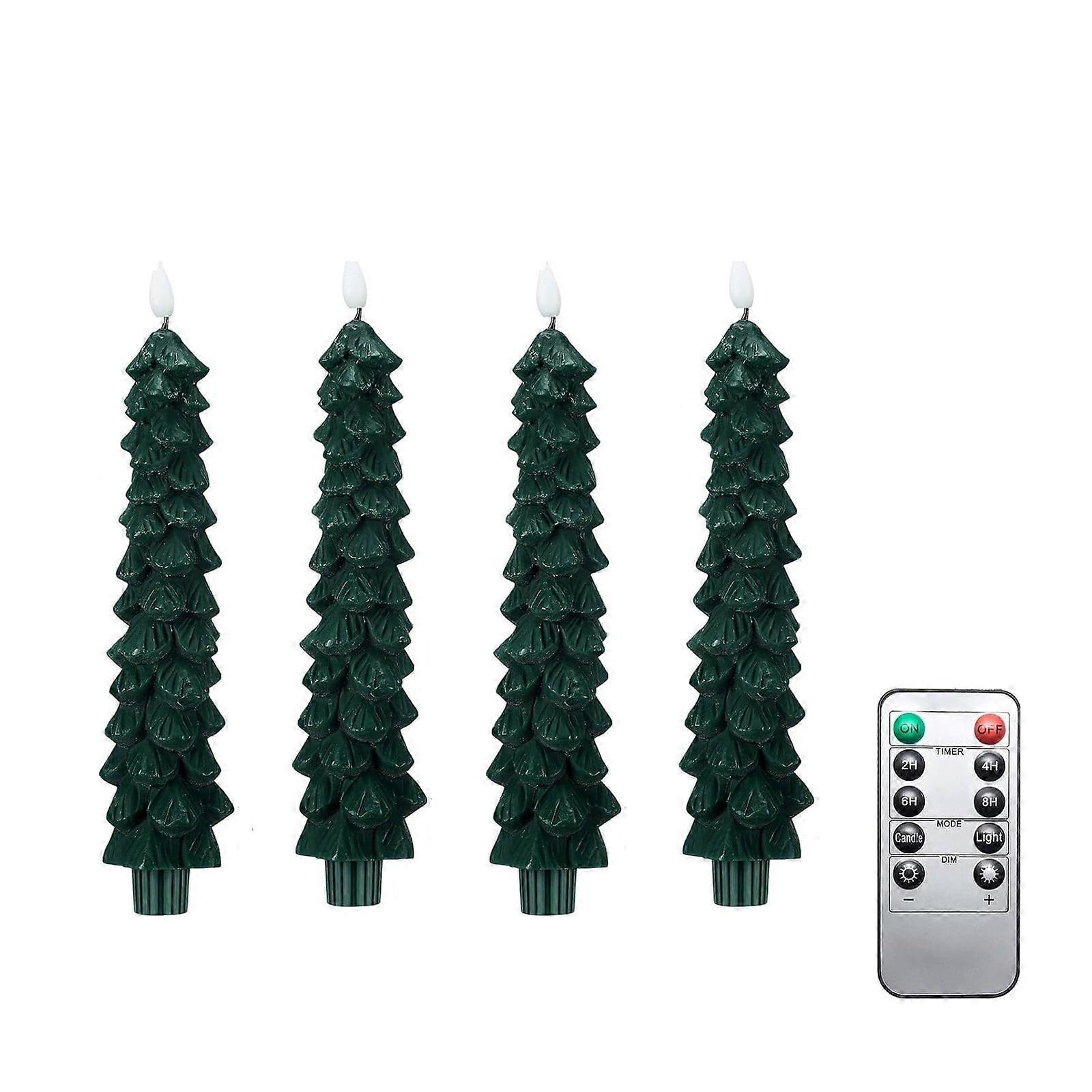 Christmas Tree Flameless Taper Candles Battery Operated with Remote 4 Pack Real Wax 3D Wick Flickering LED Candlesticks Holiday Decor