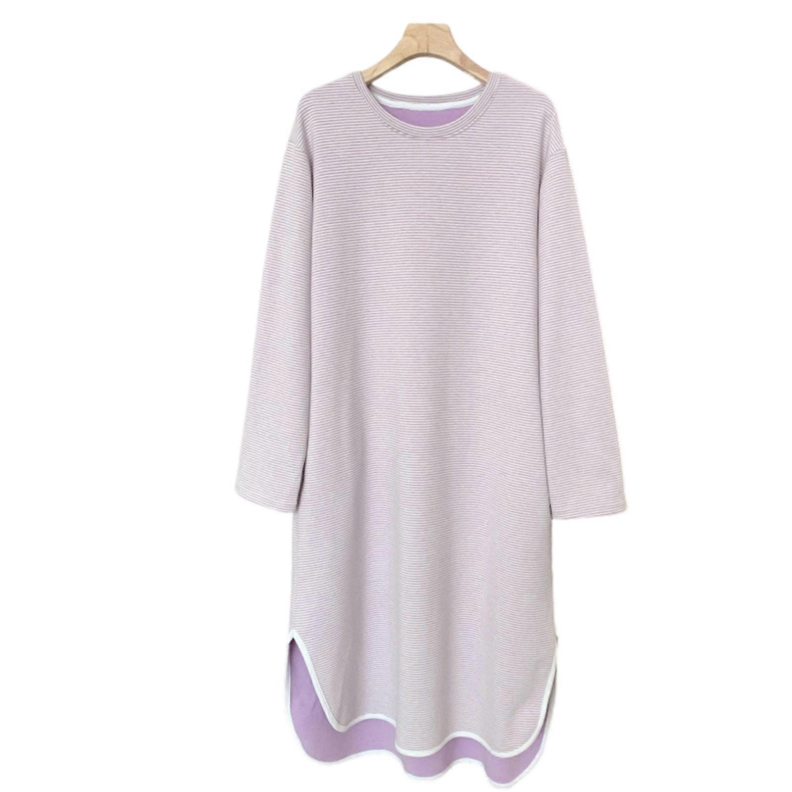 Striped Thermal Sleep Dress For Pregnant Women Soft Acrylic Fabric Loose Comfortable Maternity Nightwear Winter Edition zi and white strips XL