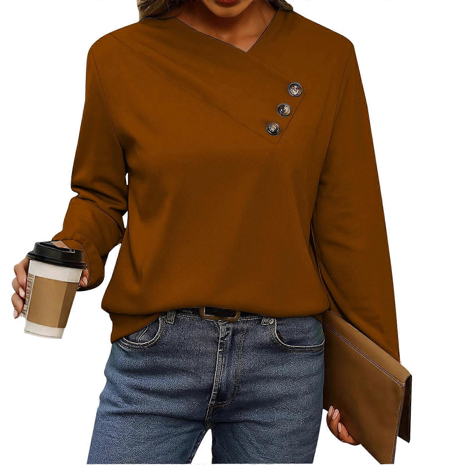 Women's V Neck Long Sleeve Fashion Shirts Loose Fit Soft Solid Colors Top DW XL