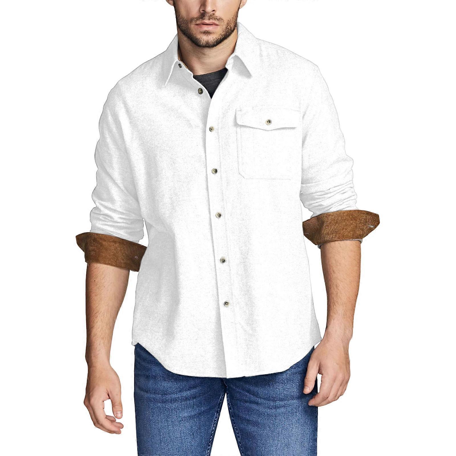 Men's Shirt Long Sleeve Casual Button Down Shirt, Brushed Soft Outdoor Work Shirts White XL