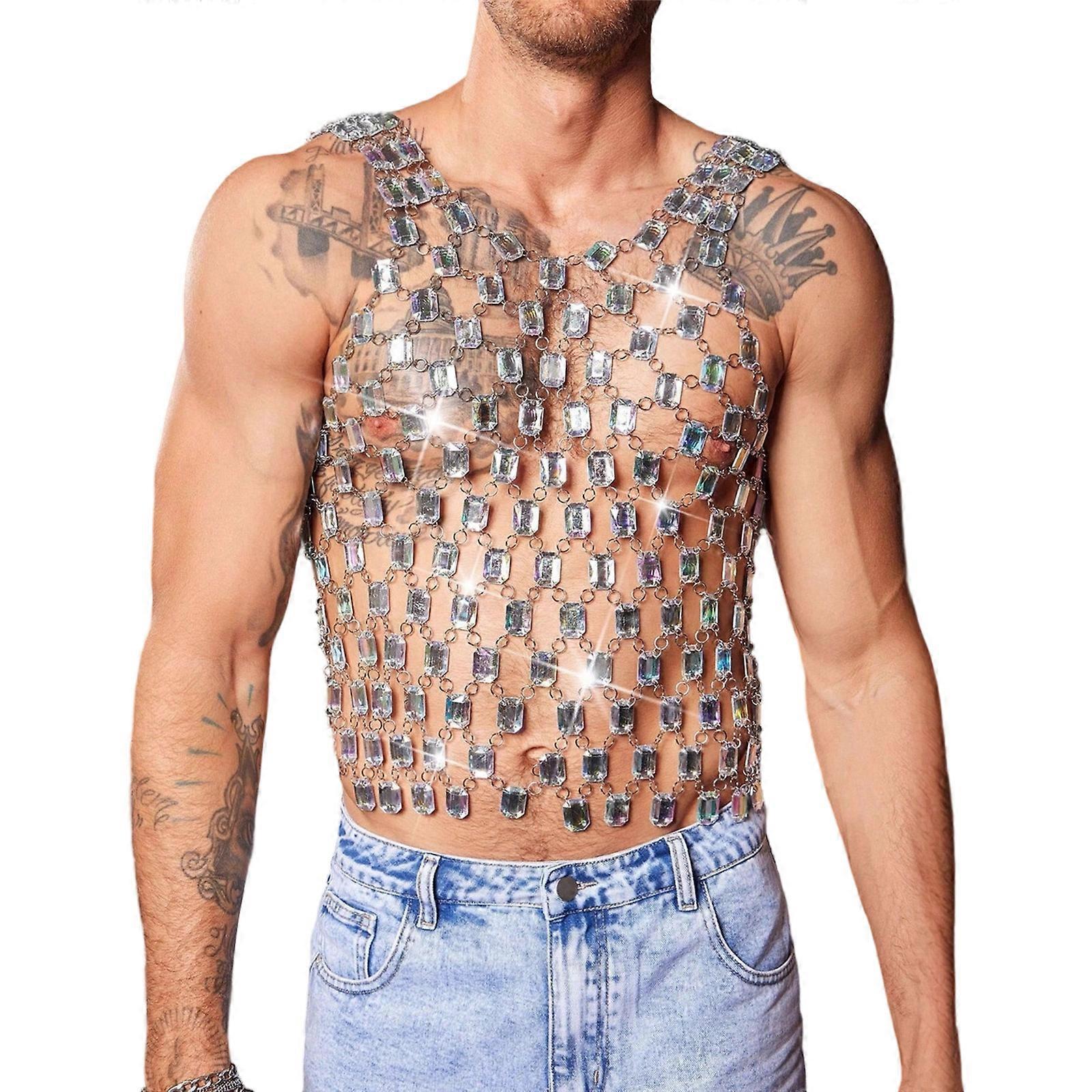 Artistic Acrylic Body Chain Sleeveless Crystal Tank Top Sliver Chain Vest Lightweight Comfortable Festival Accessory XL