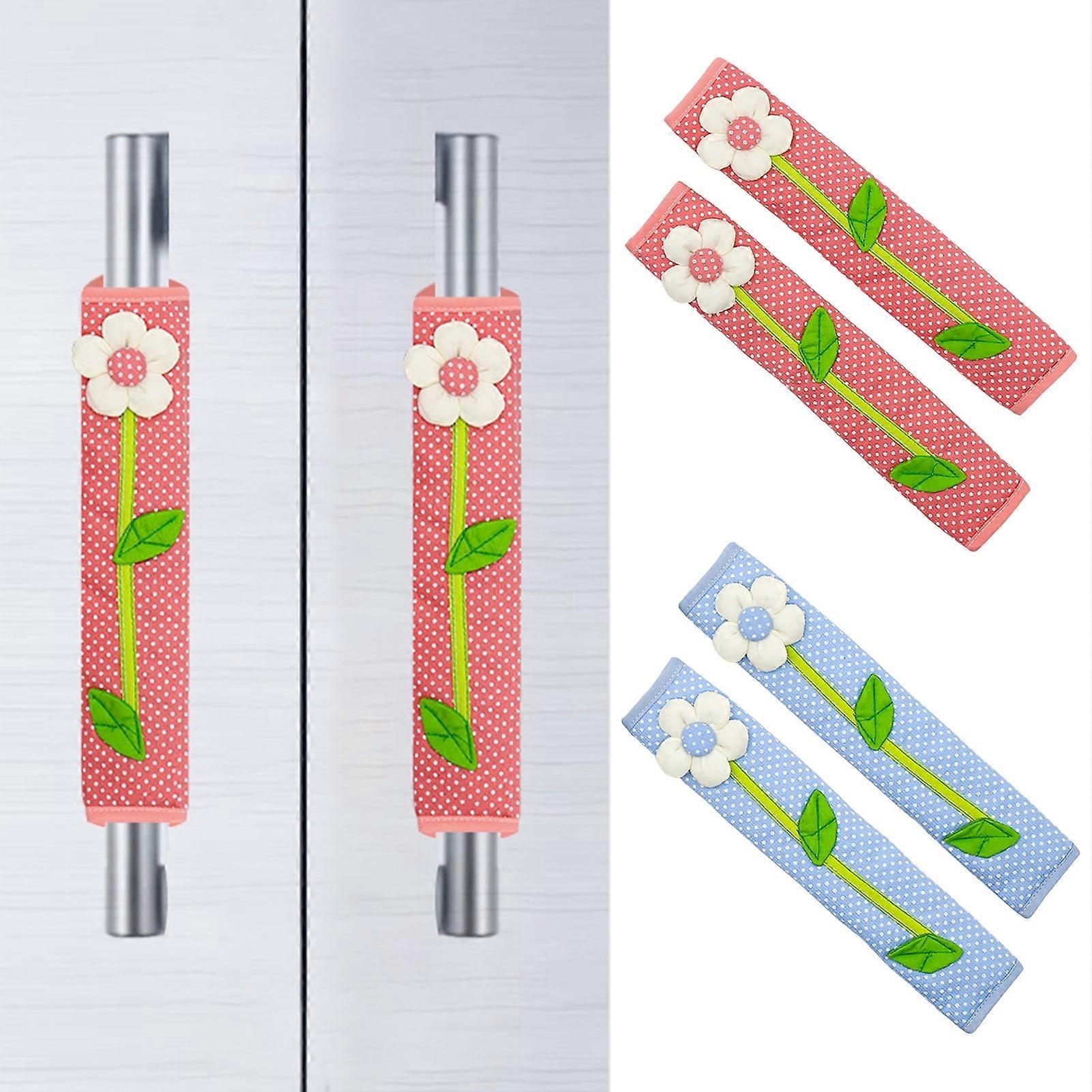SUSUchens 1 Pair Refrigerator Door Handle Covers Flower Design Wear Resistant Non-Fading Washable Handle Doorknobs Covers Pink